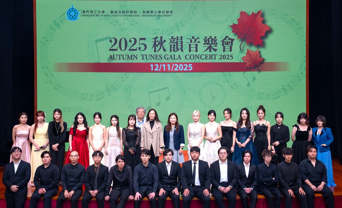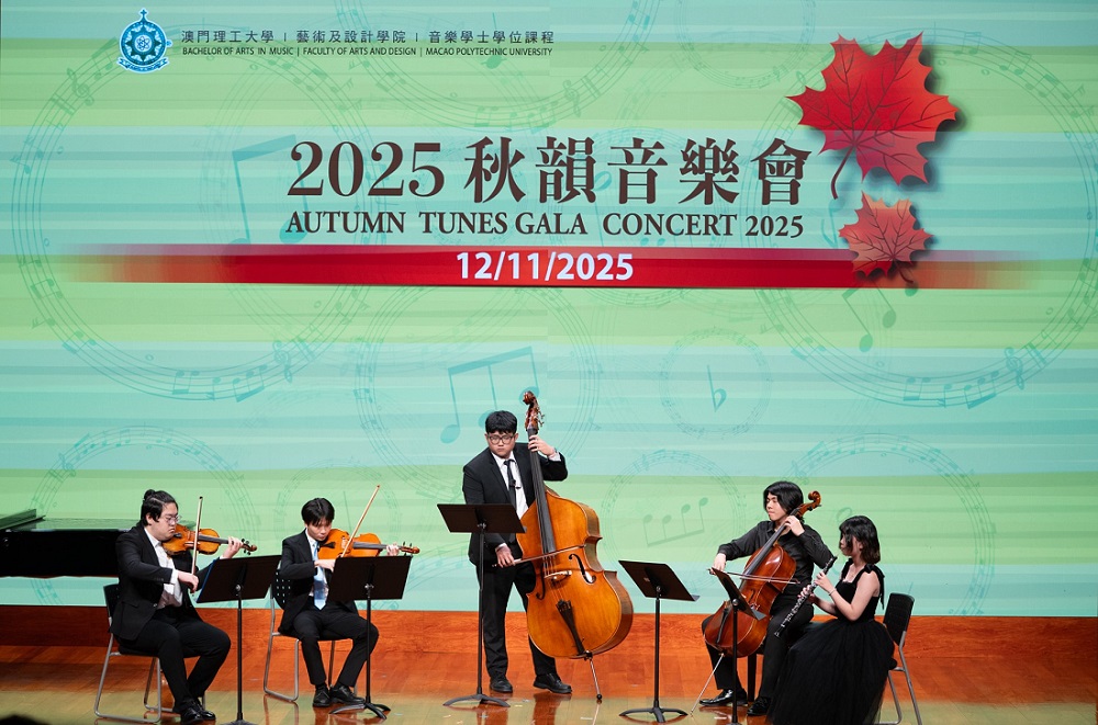 Para promover o desenvolvimento da educação artística e enriquecer a vida cultural no campus, a Faculdade de Artes e Design da Universidade Politécnica de Macau (FAD-UPM) realizou o “Concerto de Outono 2025”, que trouxe uma festa artística de alto nível para os alunos e professores. O programa do Concerto foi rico e diversificado, abrangendo várias formas de actuação, nomeadamente canto a solo, actuações a solo com instrumentos chineses e ocidentais, canto em grupo e actuações em grupo com instrumentos, demonstrando as sólidas competências profissionais e capacidades em palco dos alunos do Curso de Música da UPM.