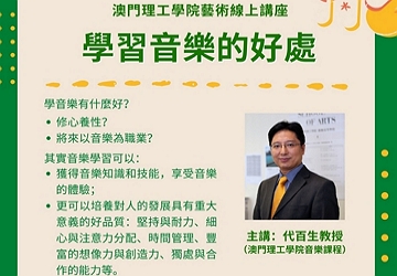 ![]() 灣區專家於澳門理工學院開講藝術管理為加強粵港澳大灣區藝術教育的交流及合作,拓寬學生藝術視野,澳門理工學院於三月二十日邀請廣州大劇院副總經理、廣州市天河區文化創意產業協會副會長梁麗珍,主持題為“舞台之外——劇院藝術教育"的藝術管理工作坊,向音樂課程學生和藝術愛好者分享藝術管理經驗和心得,內容豐富詳實,氣氛熱烈。 |
