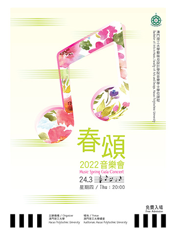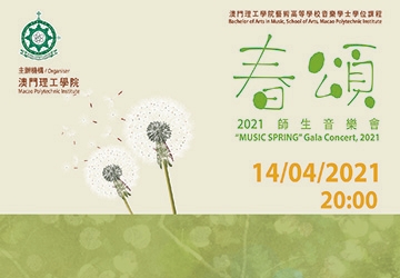 ![]() 理工辦「樂韻歡頌師生音樂會」為展示師生的音樂才華、豐富學生的藝術實踐經驗,澳門理工學院藝術高等學校音樂學士學位課程舉辦「樂韻歡頌師生音樂會」,音樂會將於3月29日晚上八時,在澳門理工學院禮堂舉行。音樂會節目多姿多彩,包括聲樂、器樂獨奏及重奏等,其中開幕及壓軸節目更是師生同台,精彩可期。全職教師——美國辛辛那提音樂學院聲樂表演博士王曦、鋼琴演奏博士郭家豪,兼職教師——澳門中樂團敲擊樂首席李暢先生,將與學生一併在舞台上精彩表演。「樂韻歡頌師生音樂會」同時也屬於在3月21日開幕持續兩周的“第三屆澳門理工學院藝術節”的活動之一。 |