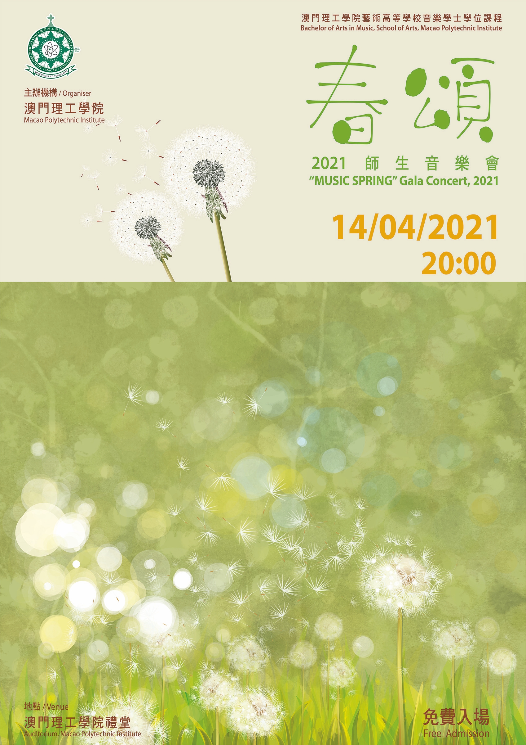 為向社會展示教學成果,分享音樂正能量,澳門理工學院將於4月14日晚上八時正,在學院禮堂舉行《春頌》師生音樂會,由音樂學士學位課程師生聯袂演出,以樂會友,呈獻歌頌春天、綻放青春的美妙樂章。