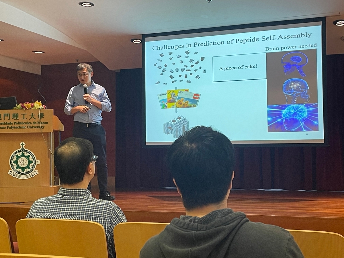 To foster academic exchange and collaboration, Professor Han Wei from the Department of Chemistry at Hong Kong Baptist University was invited to attend a seminar at the Centre for Artificial Intelligence Driven Drug Discovery (AIDD) on December 4, 2023 (Monday) at 14:30. The seminar's theme was "Computation-Guided Control of Peptide Self-Assembly." Chaired by Professor Liu Huanxiang, the director of AIDD, the seminar saw active participation from all faculty and students of the AIDD Centre.