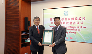 Macao Polytechnic Institute is pleased to announce that it has conferred an honorary professorship on Professor Xiong Zhang. Professor Xiong is a computer scientist and works at Beihang University. As an honorary professor of MPI, Professor Xiong will help strengthen inter-varsity academic collaboration and reinforce MPI’s research development in the Applied Sciences. The conferment ceremony was held on 6 May 2016, together with Professor Xiong's academic lecture on “The Era of Big Data”. Professor Xiong received the letter of appointment from MPI President Professor Lei Heong Iok. They both noted the long-term collaboration between MPI and Beihang and anticipated that new heights will be reached after this event.