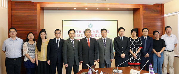 Professor Xiong Zhang (left) receives the letter of appointment from Professor Lei Heong Iok