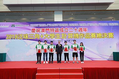 The opening ceremony and events of 2019 Pan-Pearl River Delta University STUDENT Projects Final Competition, jointly organized by Macao Polytechnic Institute and Macao Computer Society, were held at the Macao Polytechnic Institute on 3rd and 4th July 2019. The competition was the largest information technology competition in the Pan-Pearl River Delta Region this year. More than 30,000 university students in a total of 60 elite teams from Guangdong, Yunnan, Hainan, Guangxi, Guizhou, Fujian, Jiangxi, Hunan, Sichuan, Jiangsu, Hubei, Chongqing, Hong Kong, Macao and Taiwan competed to be the champions. All the teams were eager to demonstrate their talents and creativity to the panel, the guests and the public, as well as share and exchange ideas with each other. Eventually, ten universities including the University of Hong Kong, Macao Polytechnic Institute, Guangdong Ocean University, and Taiwan National Yunlin University of Science and Technology won the first prizes in the final competition.