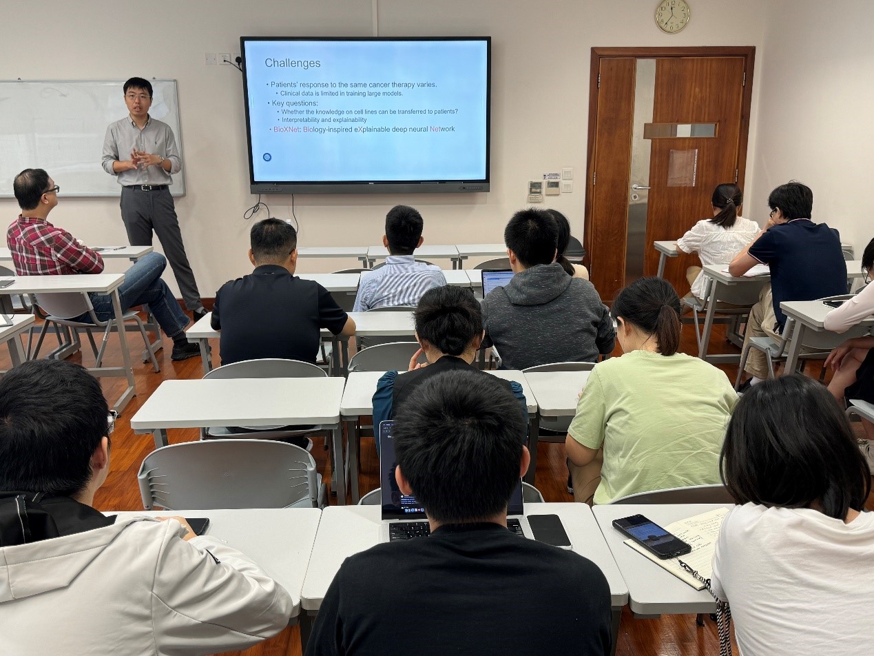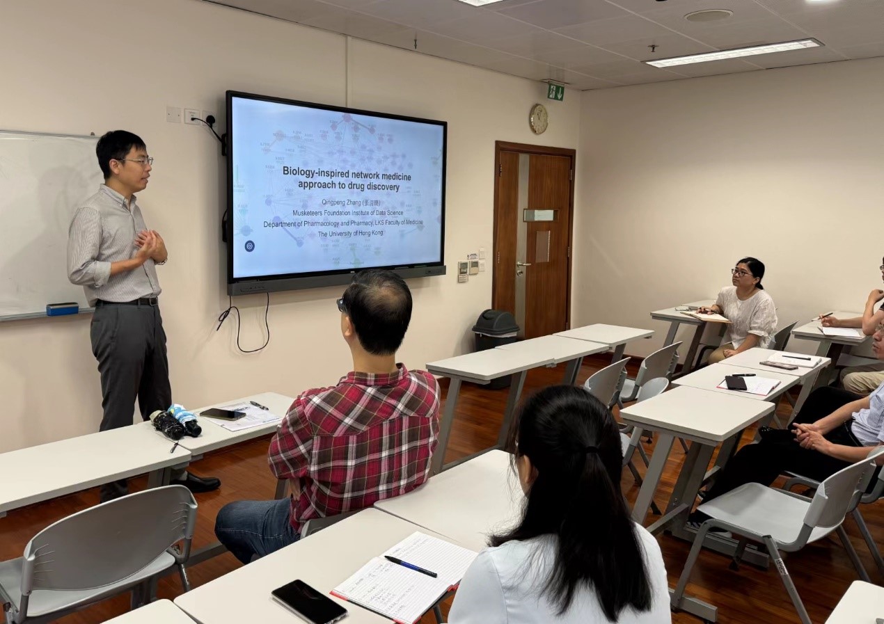 Dr. Zhang Qingpeng, Associate Adjunto at the University of Hong Kong, delivered an academic lecture titled "Biology-Inspired Machine Learning Approach for Characterizing Drug Mechanisms" at our university
