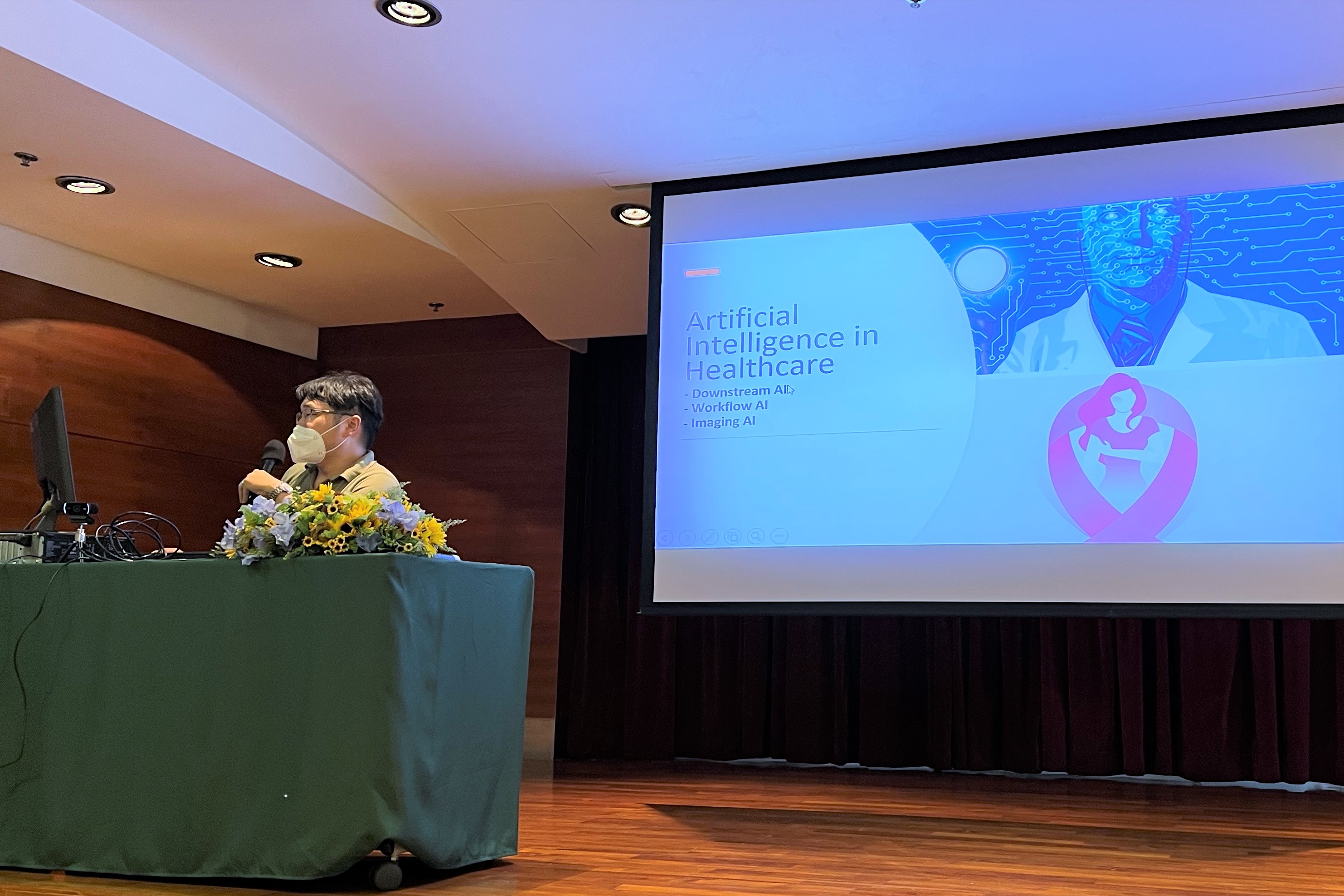 O Prof. Tan Tao fez uma apresentação em torno da aplicação das técnicas de inteligência artificial em diferentes cenários, promovendo a medicina inteligente para se tornar numa nova direcção nos últimos anos. Considerando que a indústria da medicina inteligente tem um bom futuro, o orador falou sistematicamente sobre a aplicação da inteligência artificial em análise de risco, teste, diagnóstico e tratamento de cancro de mama. Apontou que a chave para a prevenção e tratamento preciso no cancro mediante a inteligência artificial é desbravar a cadeia vertical de informação médica, sendo também necessário explorar plenamente as imagens multimodais, as informações de diagnóstico molecular, os registos médicos electrónicos, etc., algo que pode ser muito importante  para que a Grande Baía Guangdong-Hong Kong-Macau seja uma das regiões onde a inteligência artificial na imagiologia evolui mais rapidamente.