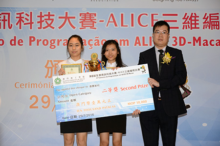 林彩月及宋燕雯同學榮獲"第八屆ALICE三維編程比賽"公開組二等奬