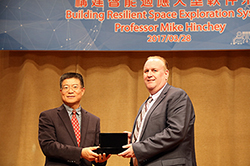 ![]() 澳門理工學院李向玉院長向麥克•軒馳教授(右)致送紀念品 |