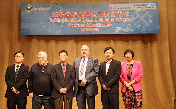 理工名師系列講座之七十二之“構建智能適應大型軟件系統”於3月28日下午在該院禮堂舉行,麥克•軒馳教授在講座中指出,全球資訊及通訊科技趨勢需要先進及完善的軟件功能,但生產高質素的軟件往往是複雜和困難,軟件工程面對著一定的挑戰,例如用戶需求更複雜的功能、系統要求提高生產力並降低成本、定期或不定期的系統優化要求等。麥克•軒馳教授指現時軟件工程正面對著許多結構不良及維護不力的遺留代碼、軟件故障,系統質量下降、複雜的物理環境和多樣的硬件平台、專業軟件工程人員不足等情況。麥克•軒馳教授在講座中介紹進化關鍵系統 (Evolving Critical Systems) ,系統要求軟件在操作時作適應和演化,以應對環境中的變化。教授同時引用在愛爾蘭軟件研究中心的進化關鍵系統研究及太空探索軟件系統作例子說明。麥克•軒馳教授在最後的總結強調軟件是需要不斷進化的,但亦需確保其安全及可靠性。