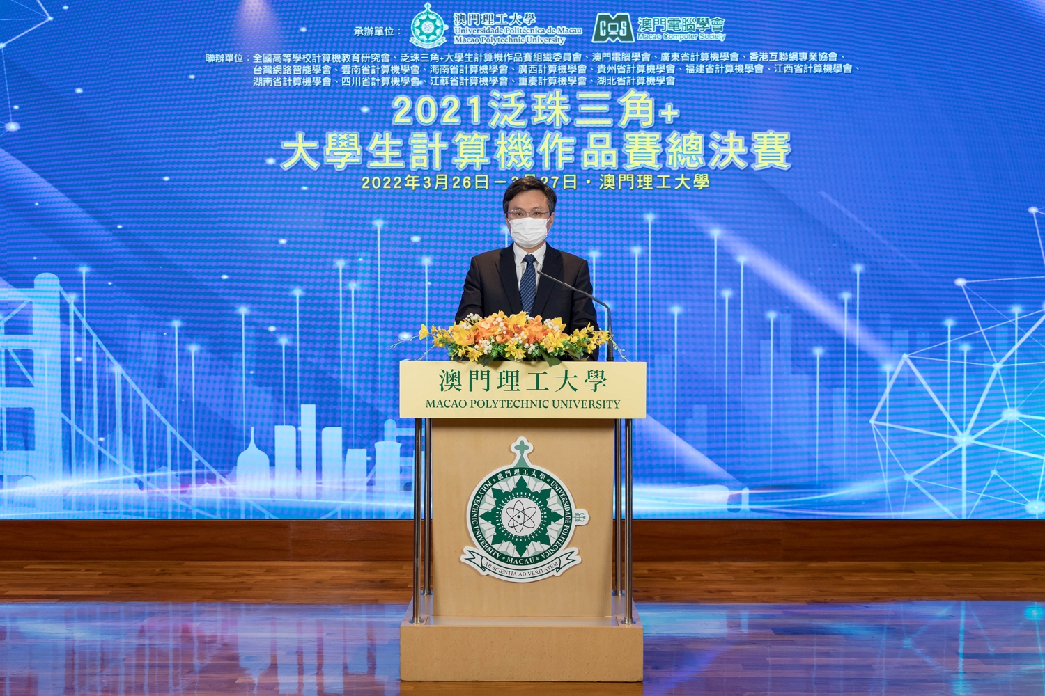 “2021泛珠三角+大學生計算機作品賽”開幕式於3月26日早上10時以線上方式舉行,由澳門電腦學會會長溫錦明、澳門理工大學校長嚴肇基、泛珠三角+計算機作品賽組委會副主席、廣東省計算機學會秘書長黃軒、泛珠三角+計算機作品賽裁判代表余雲峰等主禮。嚴肇基致辭時表示,泛珠三角+大學生計算機作品賽作為全國性的計算機類比賽,為大學生提供了一個優秀的、可持續性的、多元化的與充滿特色的創新技術交流平台,也為中學生們開闢了瞭解技術發展的平台,對普及資訊科技有積極作用,作品賽將推動澳門資訊科技的進步,助力粵港澳大灣區國際科創中心的發展,並為橫琴粵澳深度合作區的技術自主創新注入新力量。黃軒指出,全賴承辦方和各省市協辦單位的支持和配合,令本屆比賽得以順利舉行,在線上進行提高了老師們和學生們的積極性,參賽作品高質量,這對作為主辦方的組委會是很大的鼓舞,也對將來作品賽推廣至亞太地區具有很深遠的意義,預祝比賽圓滿成功。余雲峰表示,線上舉行比賽已成為內地的一個主流,網上會議相當普及,這都是資訊科技發展所帶來的成果和貢獻,作品賽作為一個推動資訊科技發展的平台,為國家人才發展和培育具有顯著的效益和作用。