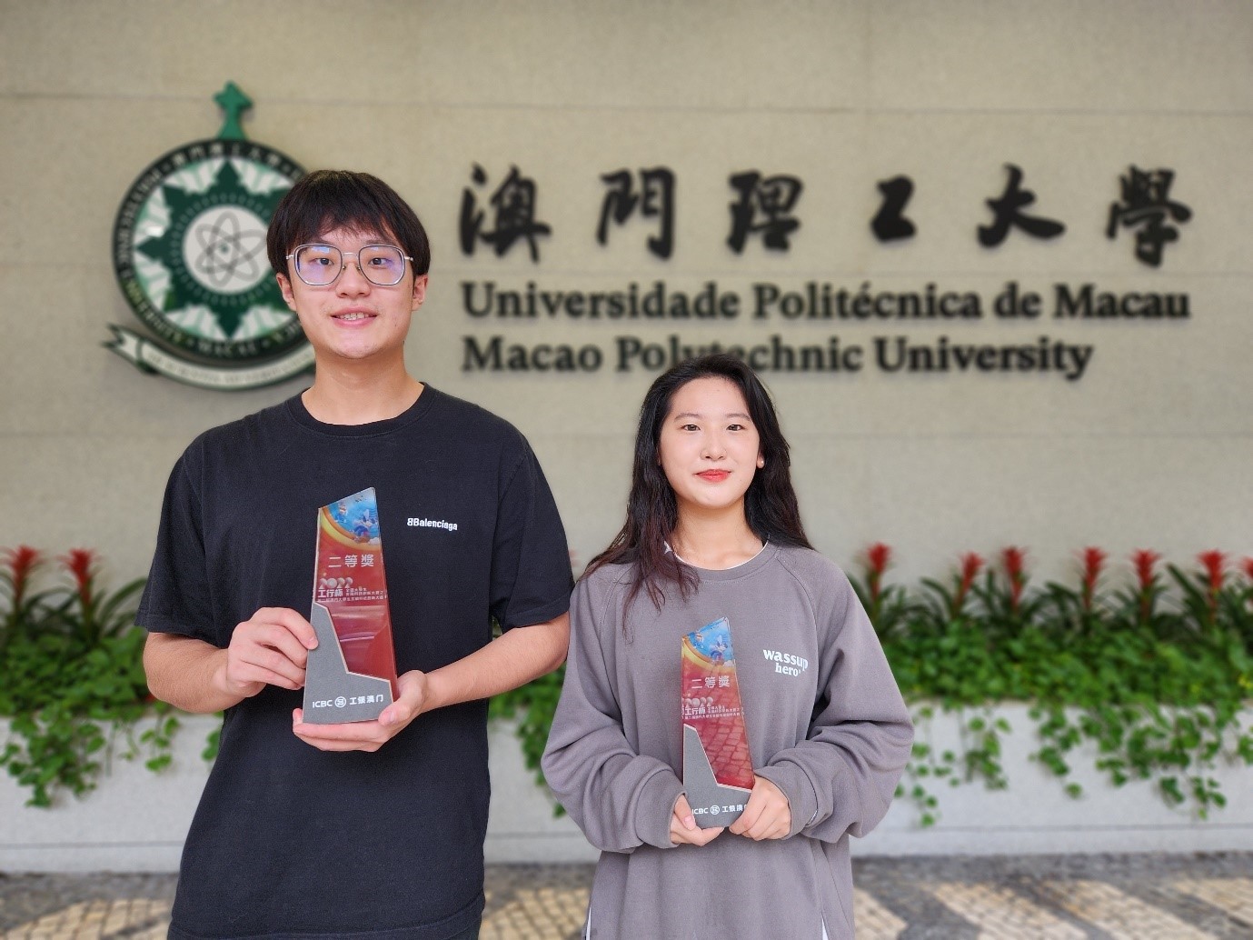 澳門理工大學獲獎學生張博亮(左)及李宜霏(右)