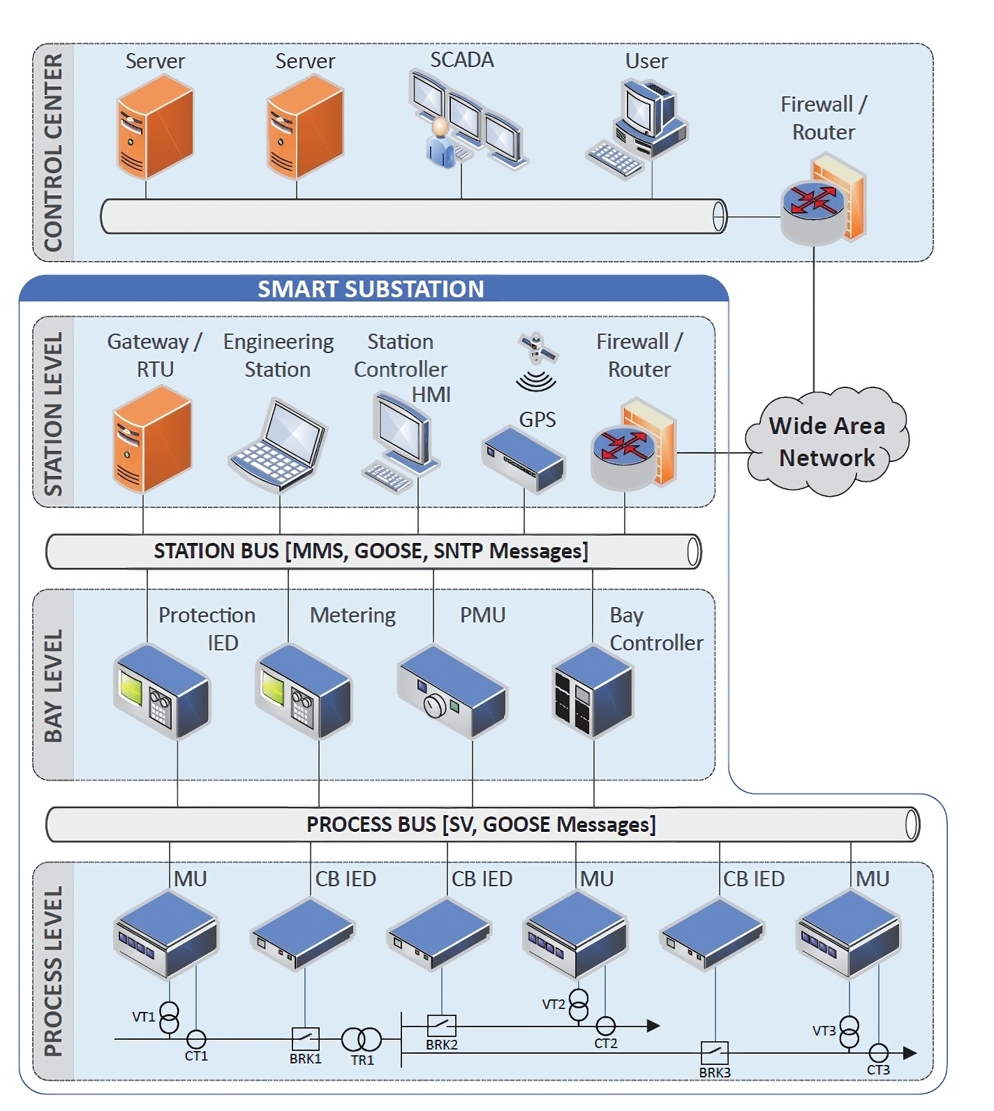 電網通過複雜的關鍵基礎設施生產、運輸、分配和向消費者提供電力,基礎設施逐漸從氣隙架構轉變為互聯架構。智能變電站是智能電網的重要組成部分,提供開關、變壓、監控、計量和保護功能,為消費者提供安全、高效、可靠的電力分配。電網的發展緊隨其後的是其所有部件的數字化以及通信和計算基礎設施的改進,從而導致向具有改進的連接性的數字智能變電站的發展。