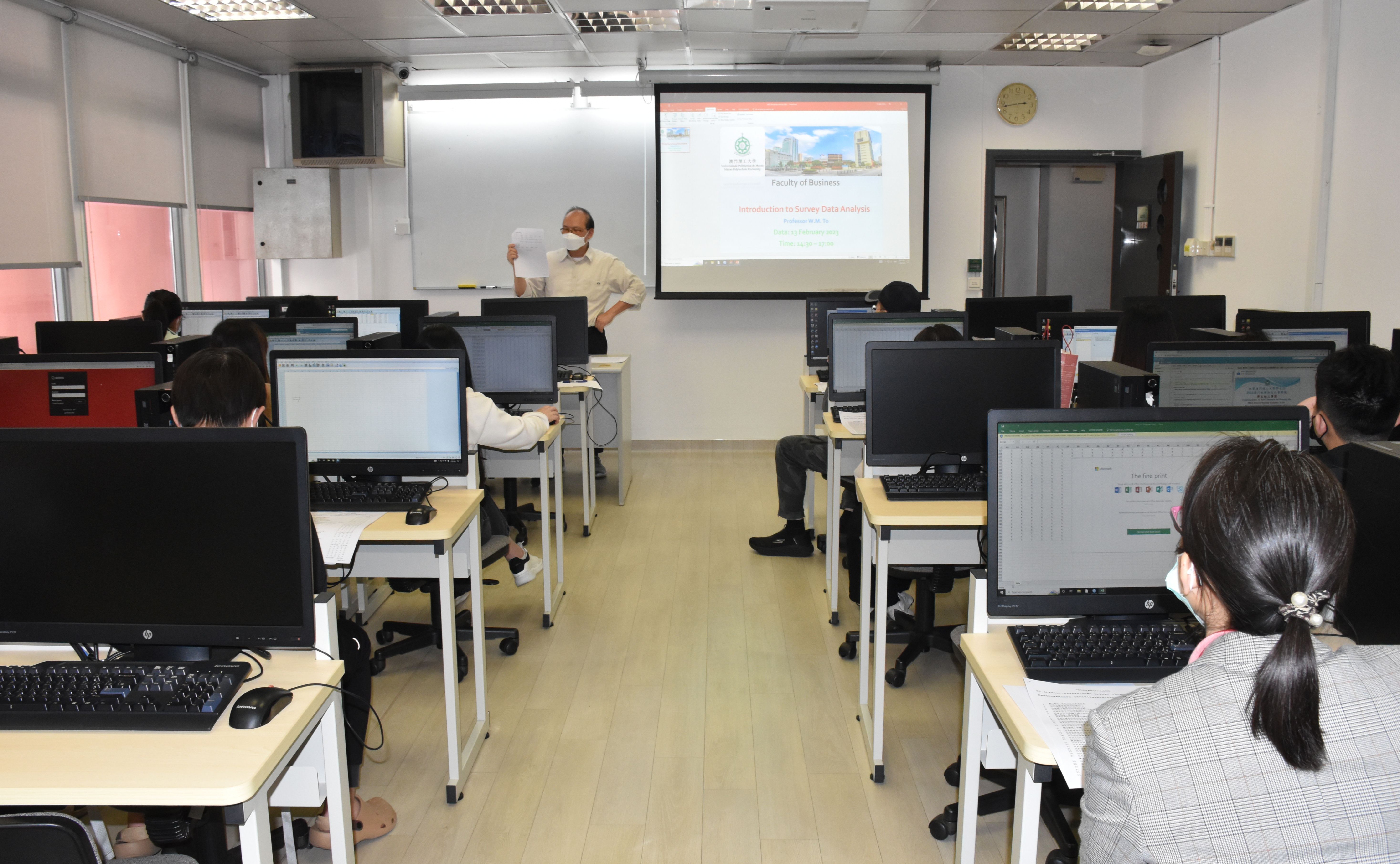 A workshop on the application of IBM SPSS 26.0 in survey data analysis was organized by the Management program of the Faculty of Business, Macao Polytechnic University recently, and the speaker was Prof. W.M. To of our Faculty. Two faculty members and twelve Management students attended the workshop.