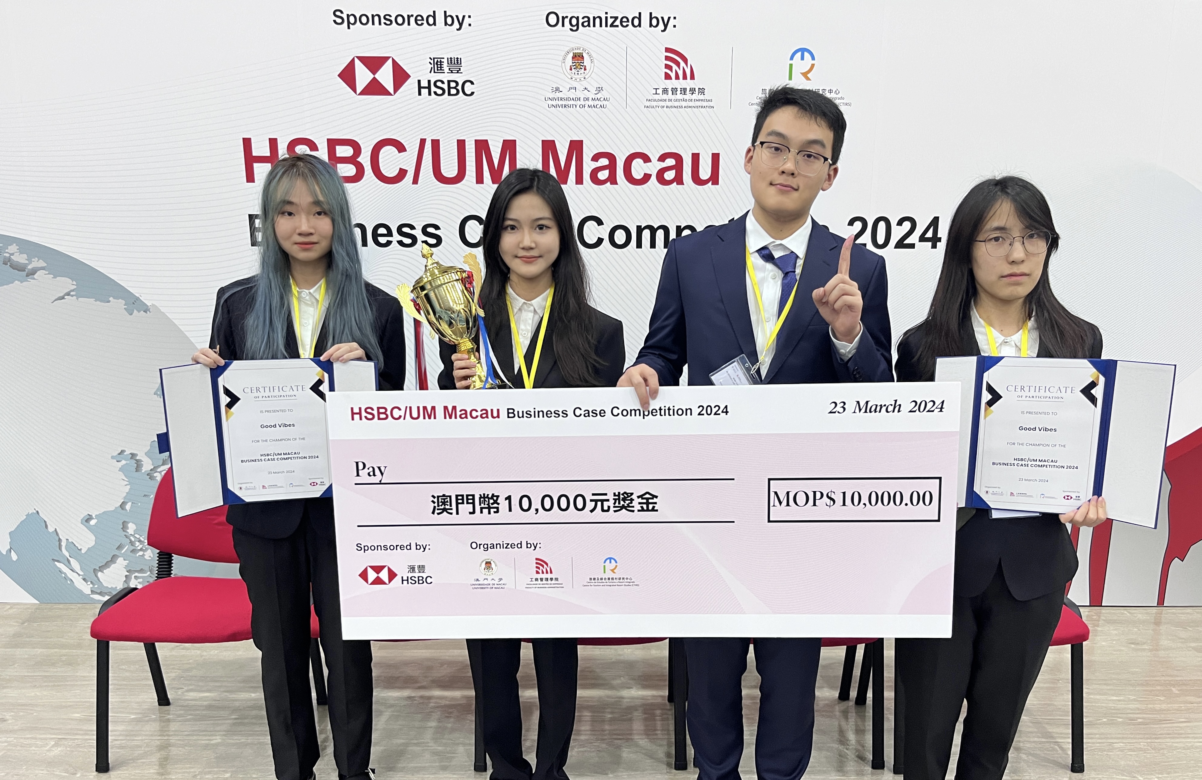 A team of four students from the Faculty of Business of the Macao Polytechnic University won the Champion at the HSBC/UM Macau Business Case Competition 2024.