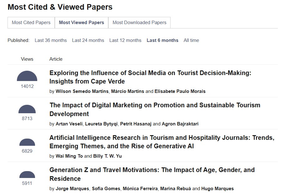 Figure 1. Most Viewed Articles in Tourism and Hospitality (as at 9 September 2025)