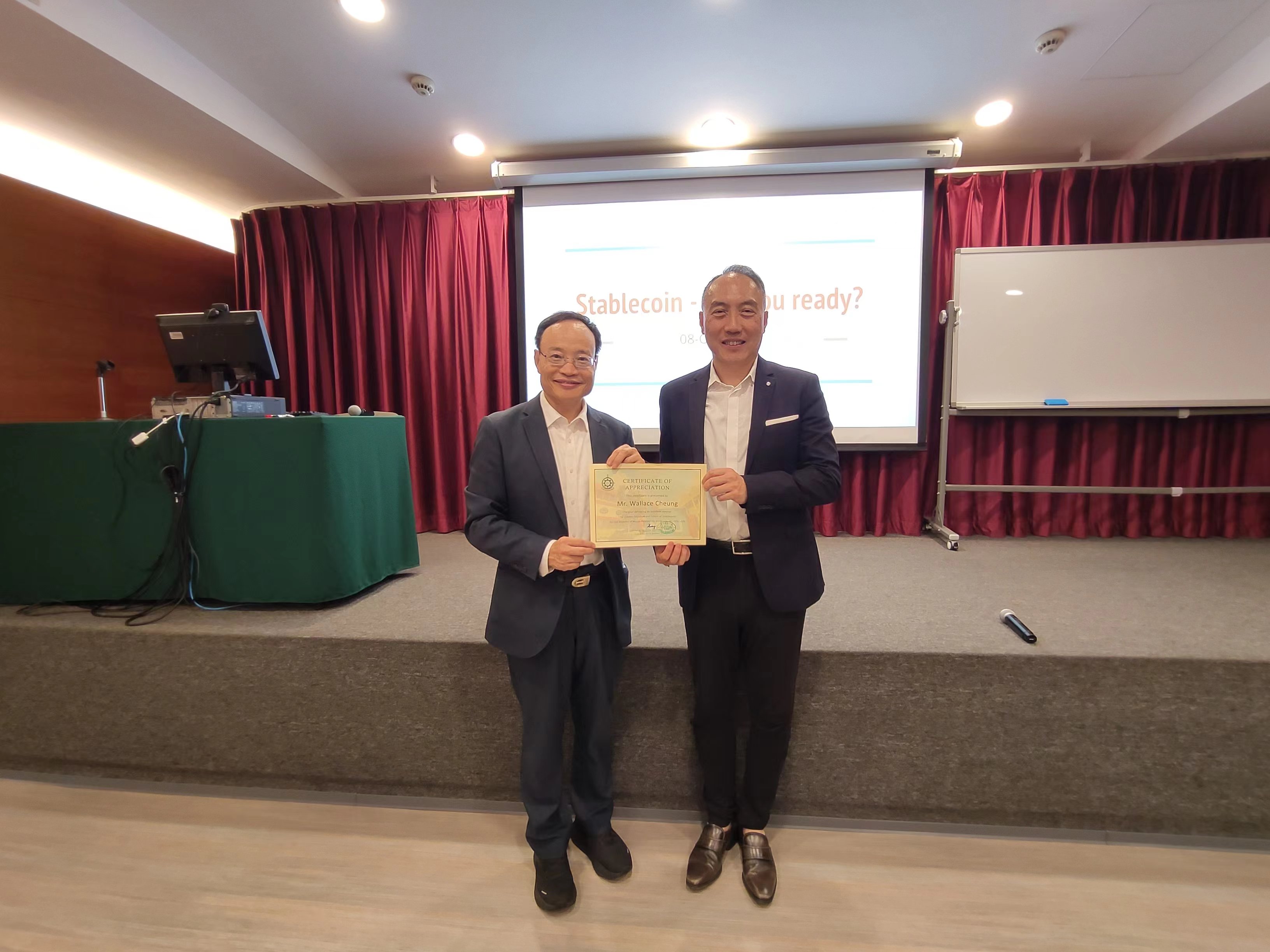 The Faculty of Business organized a seminar titled “The Current Situation and Future of Stablecoins” on October 8, 2025. The seminar speaker was Mr. Wallace Cheung, a CFA charterholder, Co-Founder and CEO of Invbots, active venture investor, and entrepreneur. With an extensive professional background, he previously served as Head of Internet Research at Credit Suisse and Vice President of Investor Relations at Alibaba Group. He is also a co-founder of Shopuddy—a global loyalty solutions provider with an 80% user penetration rate. During the seminar, Mr. Cheung shared in-depth insights and analysis on the development trends of stablecoins and their impact on the current financial system. The session not only inspired the audience to explore alternative investment tools more broadly but also enhanced their professional knowledge in this field.