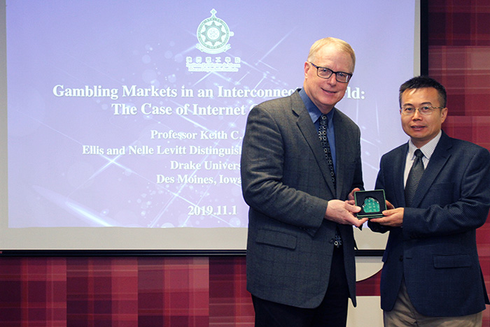 主講嘉賓以“互聯世界中的博彩市場:以互聯網博彩為例” (Gambling Markets in an Interconnected World: The Case of Internet Gambling) 為主題,講述互聯網博彩的發展如何深深改變傳統的博彩行業,並為各國監管機構帶來了挑戰。米勒教授詳細闡述了各類利用互聯網進行的博彩行為,當中包括幸運博彩、撲克、彩票、體育投注等,並以清洗黑錢為例,深入討論網上賭博網站如何成為跨境犯罪集團隱瞞、掩飾、轉移非法資金的平台,以及各國政府相應的監控措施。另外,米勒教授分享了互聯網博彩的高成癮性對年青人的危害。在講座的問答環節,出席的師生就多個議題,如網上博彩對實體娛樂場帶來的潛在影響、負責任博彩在博彩網站實施的困難度等,與主講嘉賓進行了熱烈的探討和交流。