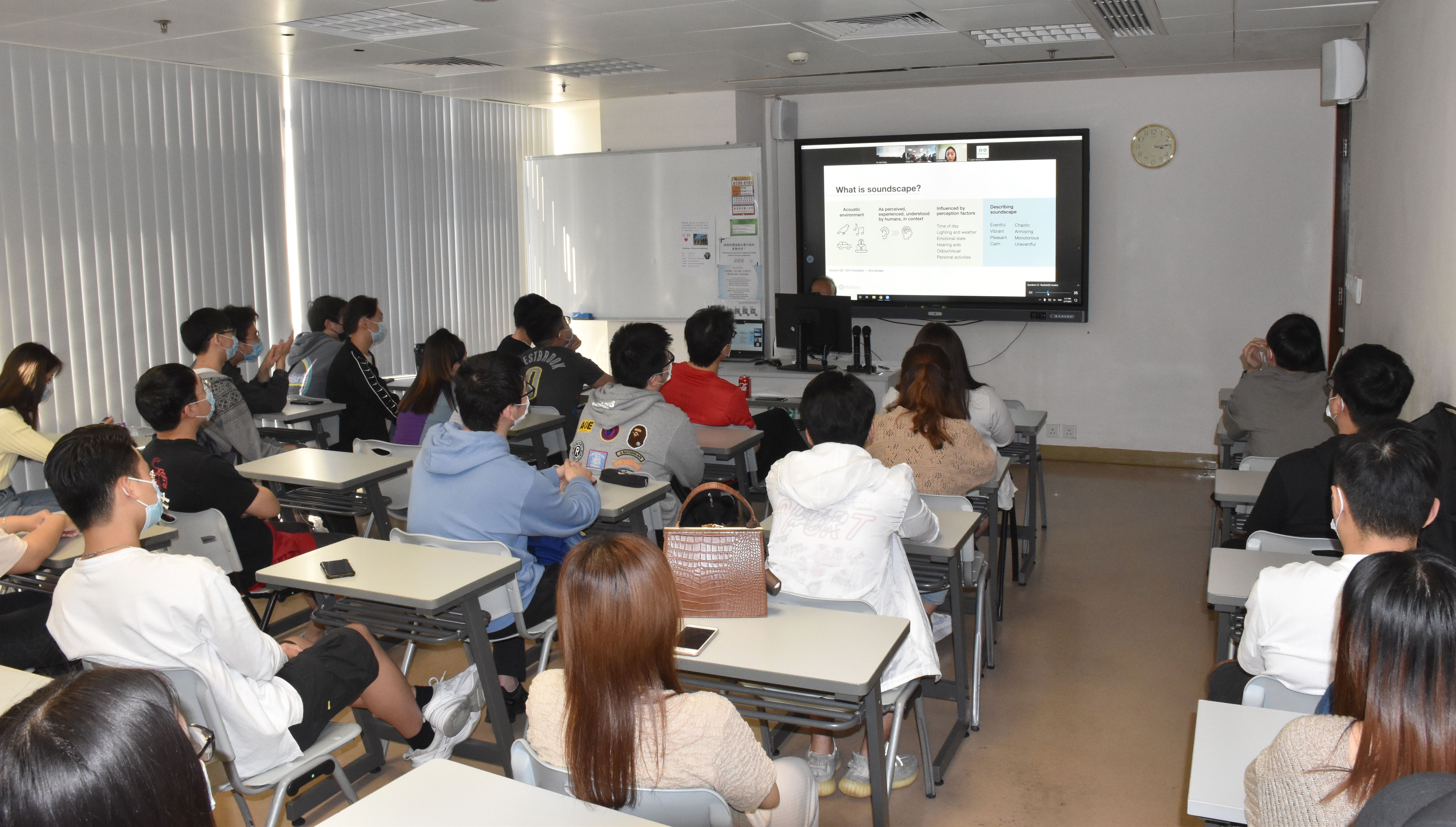本校師生於2021年3月17日在M610室出席了 “聲景 – 回顧與應用” 線上研討會,由主講者ESG Matters Asia的Carmen Ng女士於香港數碼港以線上會議形式進行。Carmen Ng女士介紹了基於ISO 12913-1:2014標準的聲景定義及思維架構。她又分享了聲景如何作為智能城市的一個重要組成部分,以及香港新市鎮發展計劃中的相關研究。最後,她講解了聽覺化及視覺化技術在增強實境(AR)及虛擬實境(VR)科技中的應用等。