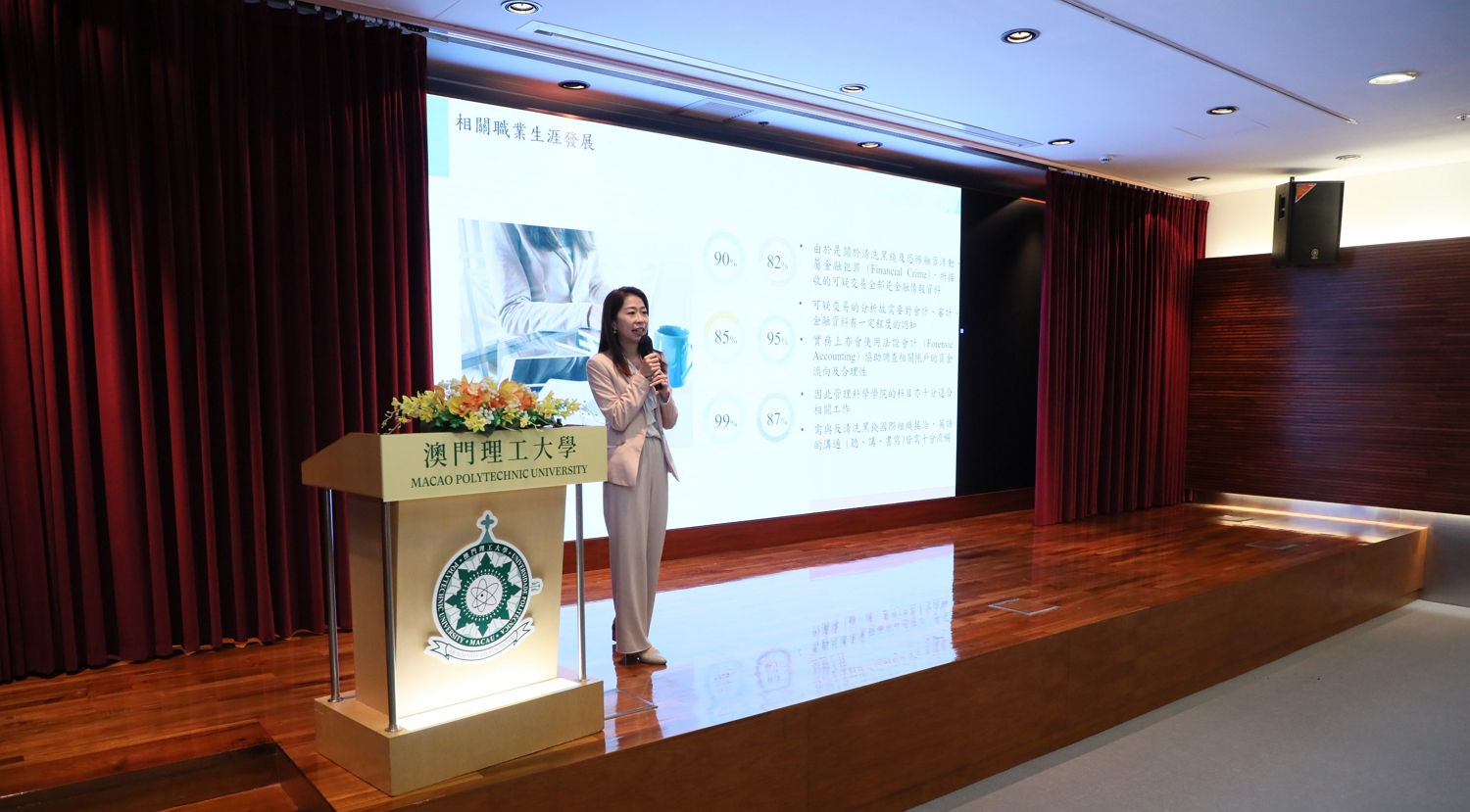 為提升大學生對預防清洗黑錢及反恐怖融資的認識,進一步瞭解有關方面的法律法規,澳門理工大學日前舉辦“反清洗黑錢及反恐怖融資專題講座”,邀請澳門特別行政區政府金融情報辦公室主講,近百名就讀會計、金融相關專業的大學生參與,反應踴躍。
