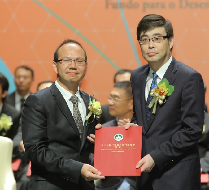 圖1. 杜偉明教授(左)榮獲2014年澳門科學技術獎自然科學三等獎