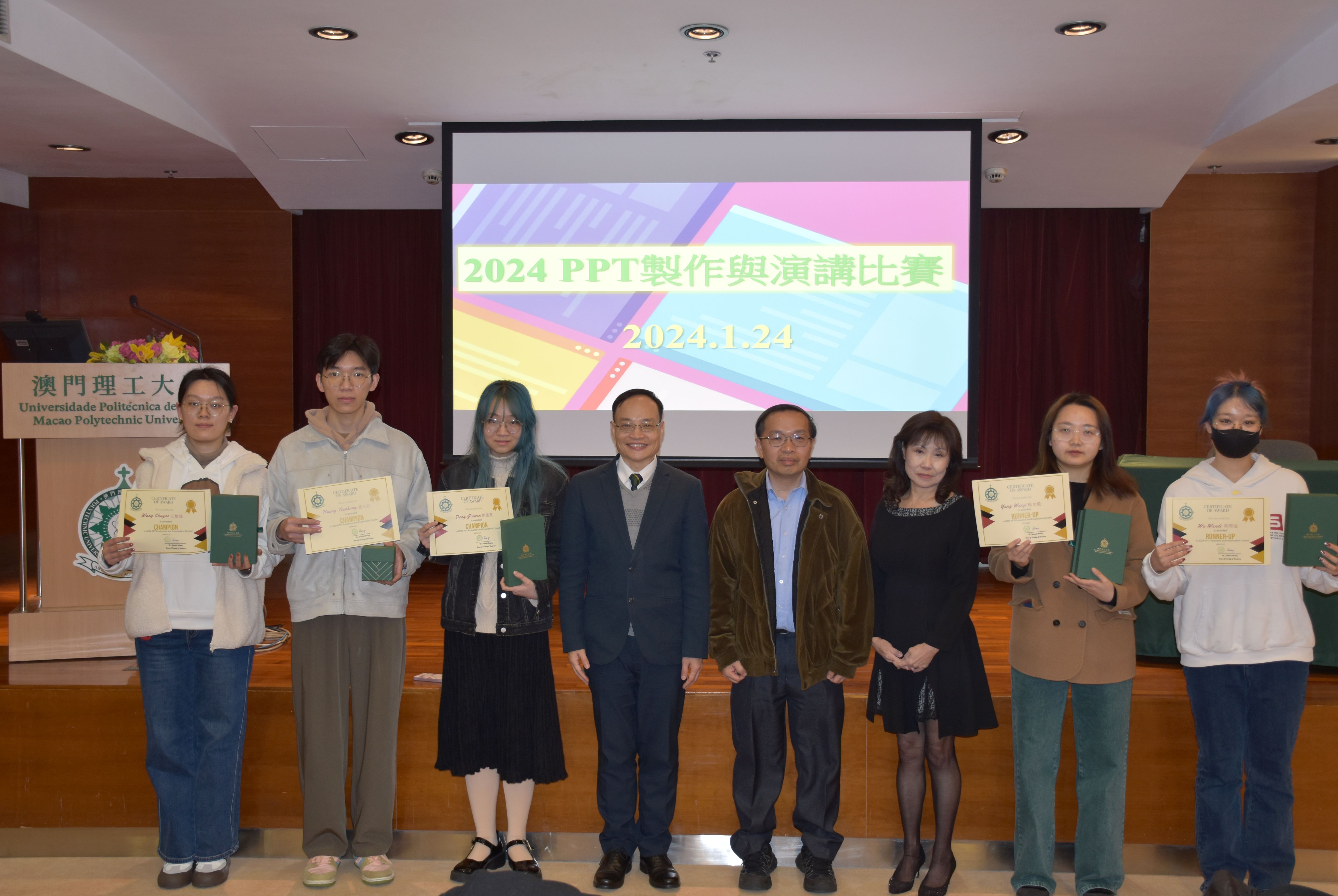 由本院主辦的 “2024 PPT製作與演講比賽”於2024年1月24日在匯智樓一樓2號演講廳舉行, 六位參賽者製作了精美的PPT並以中文或英文作了介紹,得到了評判的肯定和讚賞。該比賽有助於同學提高PPT製作、演講以及合作溝通的能力。