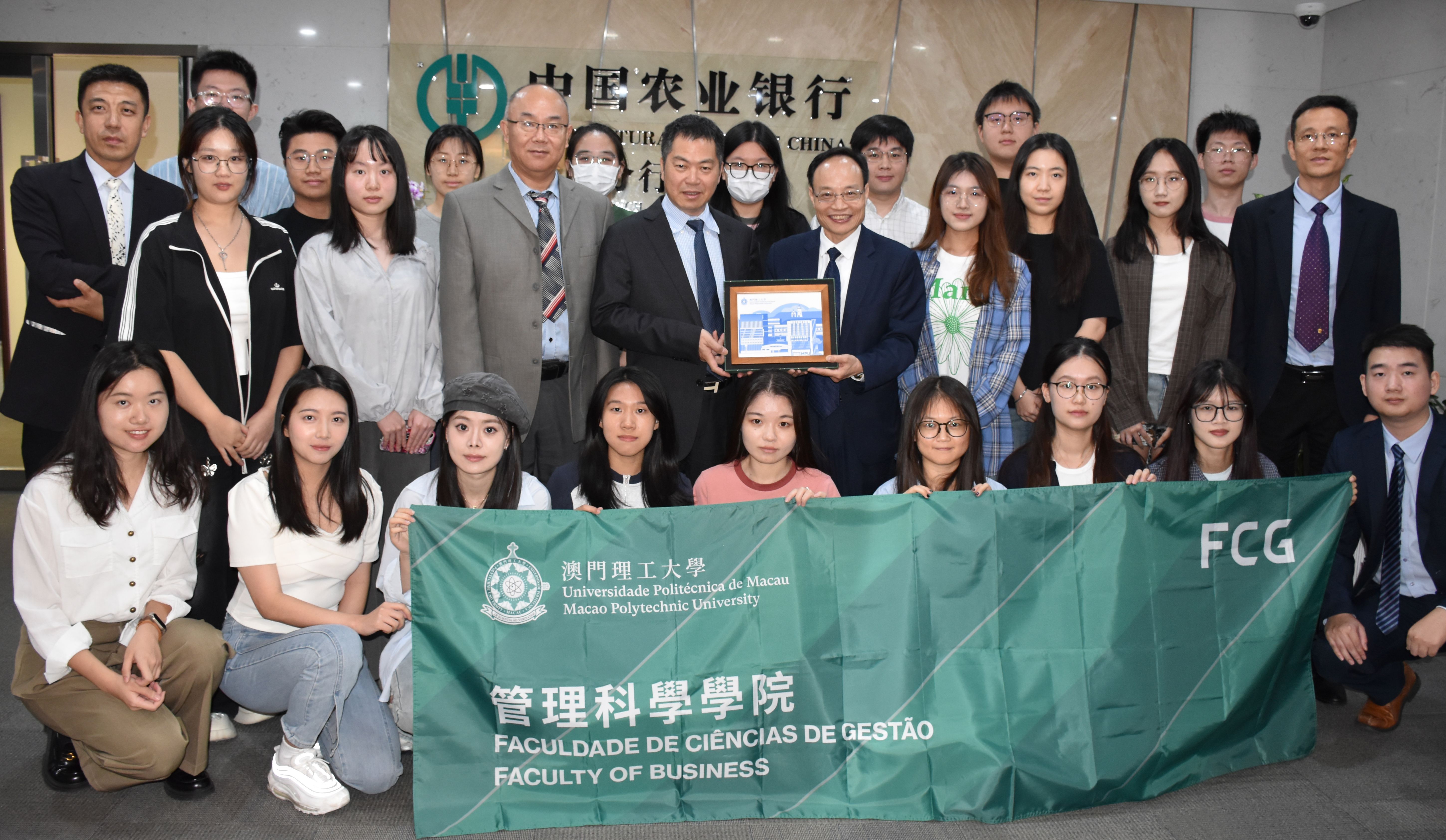 應中國農業銀行澳門分行的邀請,24名澳門理工大學金融與數據分析理學碩士課程同學及管理科學學院教師,於2024年11月8日下午參加了在該行舉辦的“農行澳門分行與澳理大管院交流座談會”,並參觀了分行。此次活動內容豐富,使師生們深入了解了澳門銀行業的現狀、發展趨勢以及金融市場業務相關的銀行實務,也為同學們的職業發展提供了寶貴的借鑒。