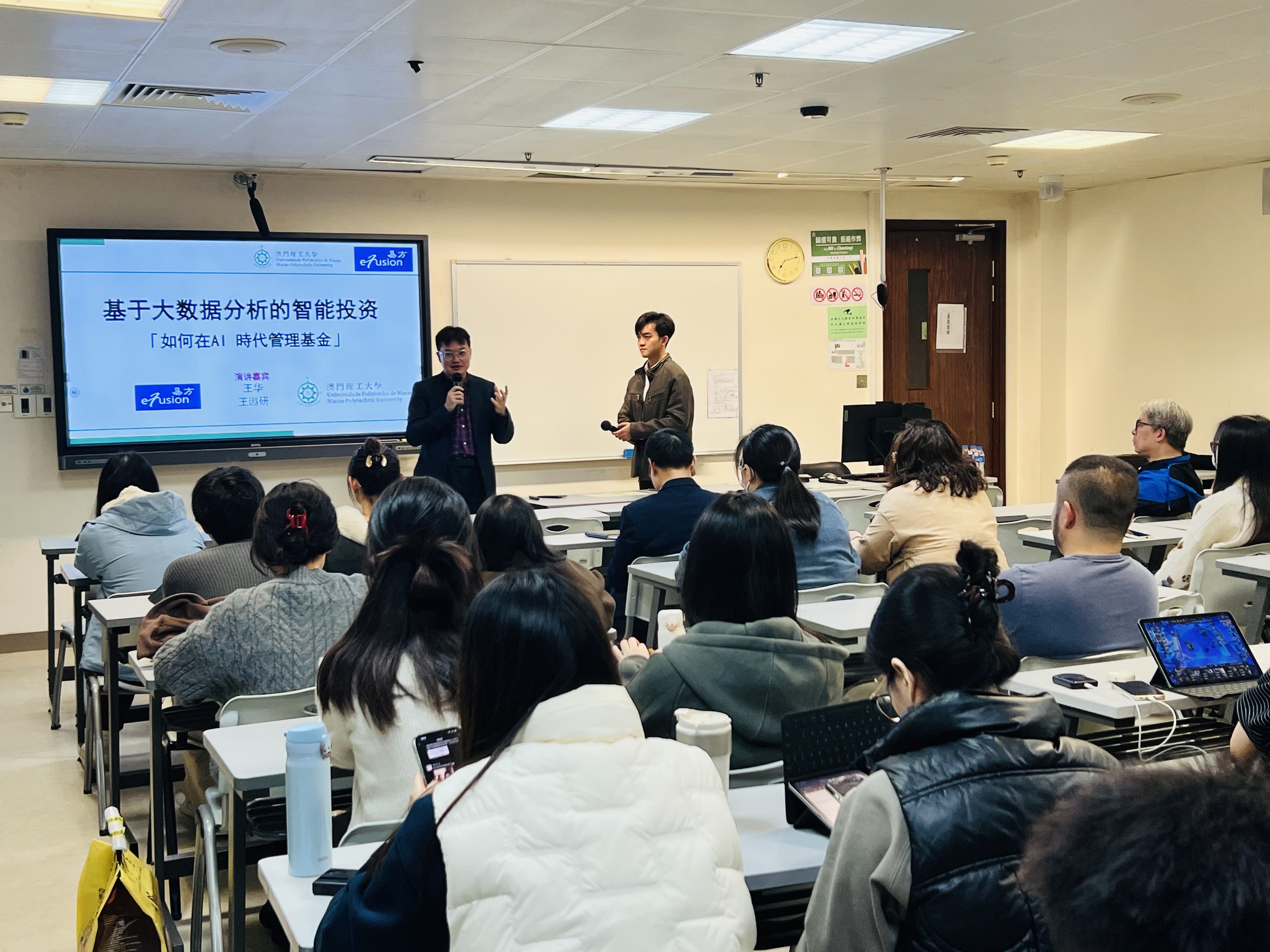 本院於2025年2月26日舉辦“如何在AI時代管理基金”講座,共有50多名師生出席。講座由易方資本創辦人及投資總監王華先生及AI研發顧問王遨研先生主講,他們分享了如何在AI時代管理基金的技巧和實際操作經驗,令師生們對資產管理行業及其內部運作有了更深刻的了解。