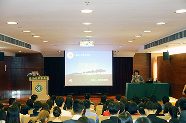 Professor Lu shared her experience and feelings about the art of recitation and vocal language. She recited stanzas from Chinese poems ‘Quiet Night Thoughts’, ‘Story of Old Tippler's Pavilion’ and ‘Untitled (Hard to come by and hard to say goodbye)’, using her varied intonations and cadence to infuse delicate sentiments in these well-known classics. The audience was deeply moved by her performance and expressed their appreciation with repeated praise and applause. Professor Lu stated that students should make reading a habit, as it is through reading out loud that they can express their emotions. She noted that recitation can train a person’s moral character so that the individual becomes more polished, refined, and ever more sincere and simple. Furthermore, to become a skilled orator, one has to coordinate his/her eyes, heart and mouth during a recitation so that he/she can deliver the profound meaning behind the words spoken. Professor Lu encouraged students to read more books, especially Chinese poems, through which they would learn how to engage in a ‘conversation’ with the ancient poets in an endless pursuit to discover the significance behind these old writings. Professor Lu concluded her talk with a sharing of her own experience, reminding students that it is inevitable that everyone feels powerless about life at some point in time. For this reason, young people have to make an effort to follow their own beliefs while pursuing a meaningful life.