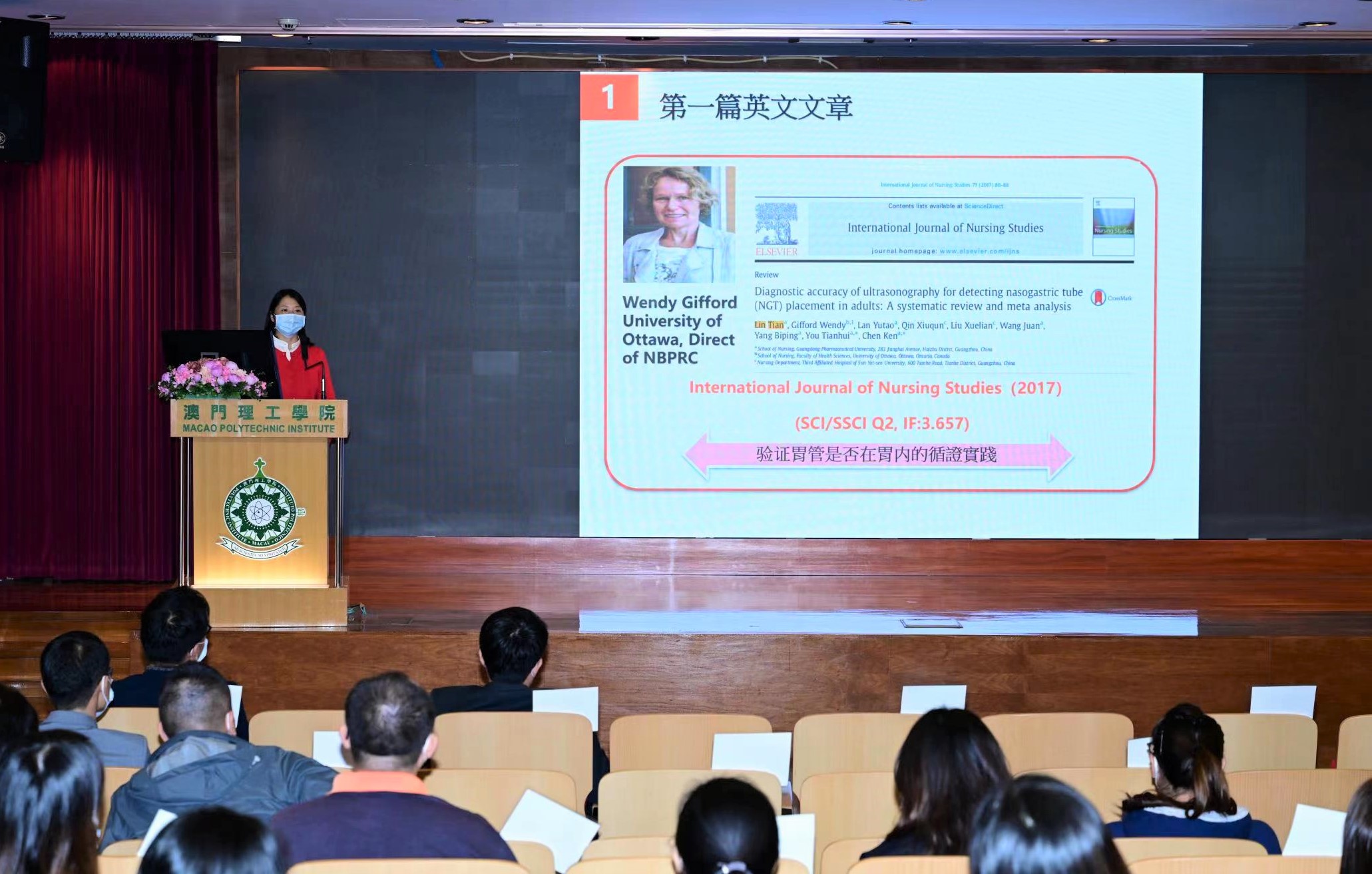 Na mesma sessão, três dos doutorandos do mesmo curso fizeram também apresentações e compartilharam com os participantes as suas experiências bem-sucedidas na publicação de artigos académicos em revistas científicas de relevo internacional. Exemplificando, com os seus artigos já publicados na revista SCI, a aluna Lin Tian partilhou a experiência adquirida nas três fases da sua contribuição de artigos, nomeadamente, antes da submissão, no decurso da submissão e após a publicação. O doutorando Huang Xiuquan apresentou vários instrumentos de suporte à investigação científica, muito práticos e úteis, a utilizar no levantamento bibliográfico e respectiva gestão, no aperfeiçoamento da linguagem da redacção, na elaboração dum diagrama, na procura da revista adequada à contribuição, entre outras partes respeitantes à investigação e publicação. A doutoranda Li Jiahui fez uma apresentação relativa à publicação e à apresentação de artigos em conferências académicas de língua inglesa, compartilhando com os participantes as suas experiências e os estados psicológicos encontrados neste processo de contribuição académica.