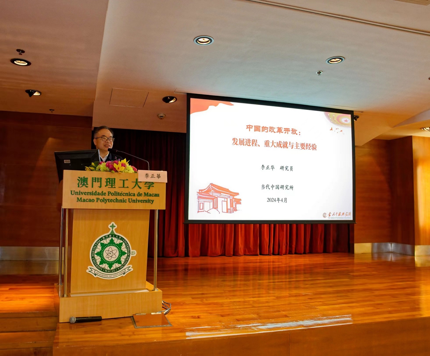 A palestra foi presidida por Wang Xi, Coordenador do Centro de Estudos de Culturas Sino-Ocidentais da Universidade Politécnica de Macau. O evento decorreu num ambiente caloroso, com os professores e alunos a colocarem questões de forma pró-activa, o que permitiu uma reflexão conjunta, aumentando não só o conhecimento sobre o desenvolvimento e os êxitos da história da China contemporânea, mas também a compreensão global sobre o processo de construção da modernização da Nova China. A palestra contou ainda com a presença de cerca de cem participantes, incluindo professores e alunos da Faculdade de Ciências Humanas e Sociais da Universidade Politécnica de Macau, com destaque para o Director desta Faculdade Lam Fat Iam, a Subdirectora Wong Un In, e o Coordenador Adjunto do Curso de Mestrado em Administração Pública, Yang Zhenjie.