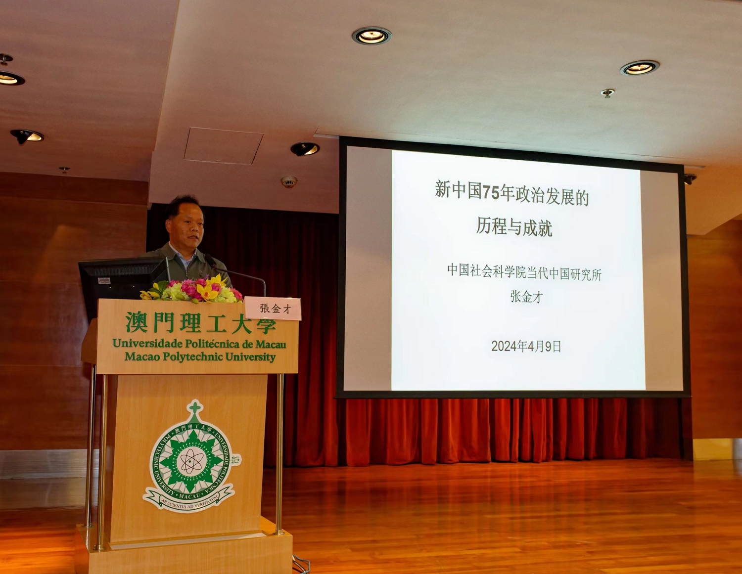Em 2024 celebra-se o 75.º Aniversário da Implantação da República Popular da China e o 25.º Aniversário do Retorno de Macau à Pátria. Para reforçar o conhecimento dos estudantes universitários sobre o desenvolvimento histórico da China contemporânea, a Faculdade de Ciências Humanas e Sociais da Universidade Politécnica de Macau (FCHS-UPM) organizou uma palestra académica subordinada ao tema “Realizações e o Desenvolvimento da História da China Contemporânea”. Como oradores desta palestra, foram convidados o Subdirector do Instituto da China Contemporânea da Academia Chinesa de Ciências Sociais, Li Zhenghua, e o Chefe do Gabinete de Estudo de História Política, subordinado ao referido Instituto, Zhang Jincai, os quais apresentaram os seus relatórios académicos intitulados “Reforma e Abertura da China: processo de desenvolvimento, grandes realizações e principais experiências” e “Evolução e Sucesso do Desenvolvimento Político da Nova China nos 75 Anos”, respectivamente.