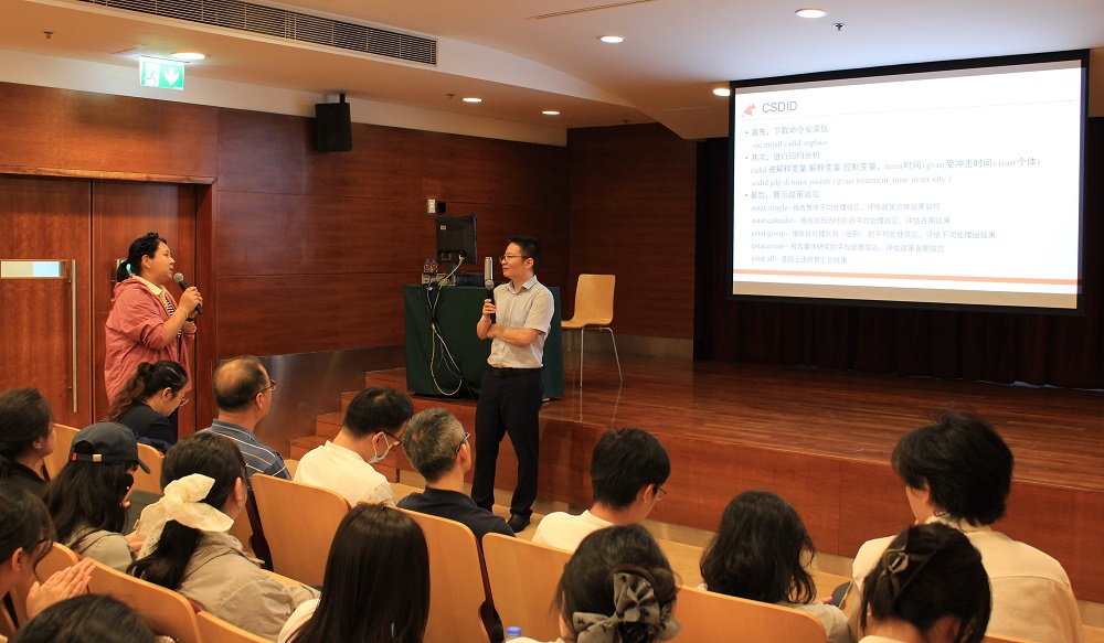 Na sessão prática, o Professor Lu demonstrou a utilização do software Stata, enfatizando a importância de técnicas-chave como o teste de hipóteses de tendência paralela e o teste placebo no processo de investigação. Isto ajudou os alunos a compreender todo o processo de investigação, desde o processamento de dados, a especificação do modelo até à interpretação dos resultados. Apresentou também métodos avançados, como o DID multitemporal e o DID progressivo, e explicou a aplicação e os desafios de técnicas como a decomposição de Bacon e o CSDID no tratamento de enviesamentos em modelos de efeitos fixos bidireccionais.