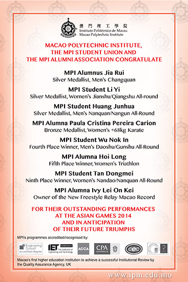 Congratulations to MPI’s alumnus and students for their outstanding performances at the Asian Games 2014
