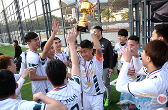 The 2015-2016 Macao University Students Football Championship Finals were held at the Football Pitch of Macao Federation of Trade Unions Workers Stadium on 6th February 2016, MPI playing against the University of Macau in the Final. MPI's captain scored a goal with a header, the goalkeeper also providing a strong performance, with MPI winning the game 1:0 to achieve five consecutive championships!