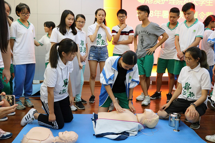 During summer vacation, the School of Health Sciences and Student Affairs Office of Macao Polytechnic Institute (MPI), and the Sun Yat-Sen University (SYSU) co-organised the "2018 Guangdong-Hong Kong-Macao Summer Nurse Camp" with the theme of "Learn Lingnan Culture, Discover the Essence of Nursing". Approximately 20 MPI students, together with students from China and Hong Kong, gathered at SYSU in Guangzhou to participate in the 2-week nurse camp.