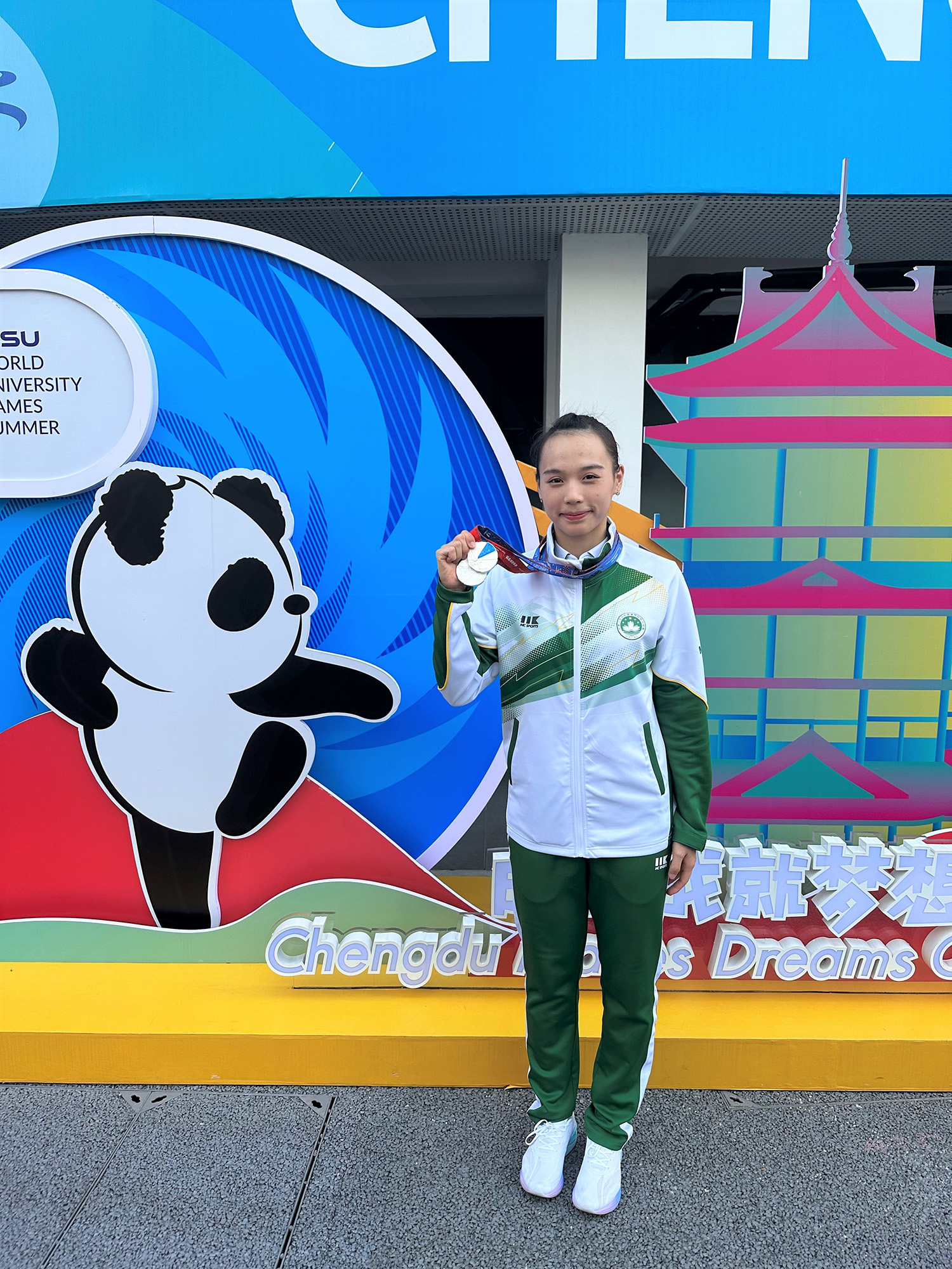 Ms. Wong Weng Ian, a member of the Macao sports delegation and student of Macao Polytechnic University (MPU), achieved remarkable success in the women's Jianshu and Qiangshu events, securing two silver medals, at the 31st FISU World University Games currently taking place in Chengdu. Professor Im Sio Kei, Rector of Macao Polytechnic University, enthusiastically congratulated Ms. Wong for her outstanding performance and praised her along with other MPU athletes for their dedication and competitive spirit in the games. Their achievements not only inspired and energised MPU students and staff but also showcased the exceptional qualities of MPU students. As always, Macao Polytechnic University would continue to support the development of student sports and contribute to the promotion of the “Big Health” industry, as well as making contributions to the nation and Macao.