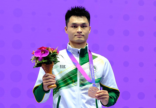 ![]() Parabéns ao atleta Huang Junhua, graduado da UPM, pela conquista da medalha de bronze na modalidade masculina de Nanquan & Nangun All-Round na 19ª edição dos Jogos AsiáticosNo dia 26 de Setembro, na 19ª edição dos Jogos Asiáticos em Hangzhou, Huang Junhua, graduado da UPM que concluiu o Curso de Mestrado em Desporto e Educação Física em 2021 e o Curso de Licenciatura em Ensino de Educação Física em 2017, ganhou, com 19,463 pontos, a medalha de bronze na modalidade masculina de Nanquan & Nangun All-Round, trazendo honras para Macau. O Reitor da UPM, Im Sio Kei, congratulou-se calorosamente com os resultados alcançados, elogiando a coragem, o espírito positivo e combativo de Huang Junhua neste palco internacional, o que serve como um bom exemplo para os docentes e alunos da UPM. Por sua vez, Huang Junhua agradeceu o apoio, atenção e incentivo da UPM, prometendo continuar a esforçar-se no percurso académico e desportivo. |