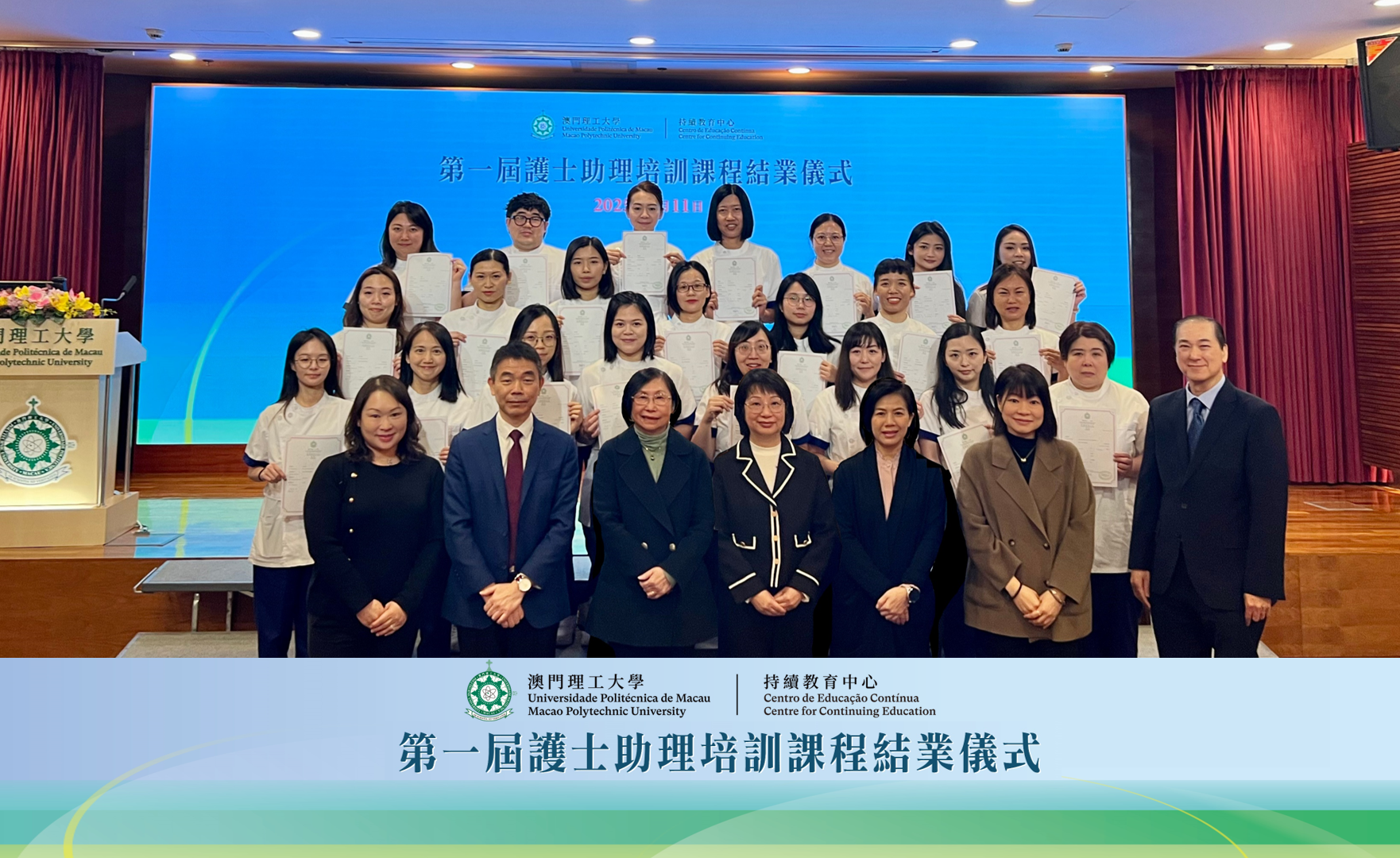 ![]() 26 formandos concluíram a 1.ª Edição do “Curso de Formação para Ajudante de Enfermeiro” do Centro de Educação Contínua da UPMPara continuar a aperfeiçoar os serviços relacionados com a vida da população e satisfazer as necessidades das instituições médicas e dos lares de Macau, o Centro de Educação Contínua da Universidade Politécnica de Macau (CEC-UPM) organizou a primeira edição do “Curso de Formação para Ajudante de Enfermeiro”, proporcionando formação aos indivíduos que pretendem dedicar-se à prestação de cuidados de saúde nas instituições de saúde. Os 26 formandos concluíram, respectivamente, 600 horas lectivas de teoria e prática de enfermagem e, com o apoio da Direcção dos Serviços de Saúde da Região Administrativa Especial de Macau, realizaram 400 horas de estágio clínico no Centro Hospitalar Conde de São Januário, tendo passado na avaliação e recebido o certificado do curso. |