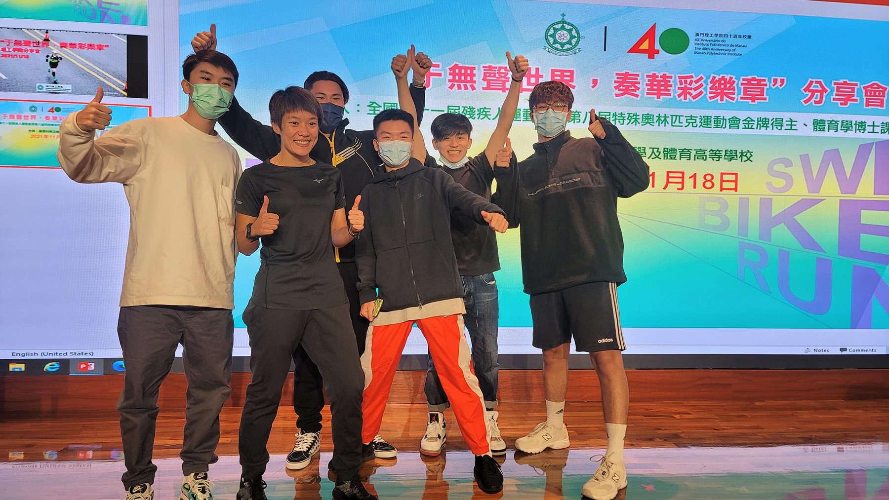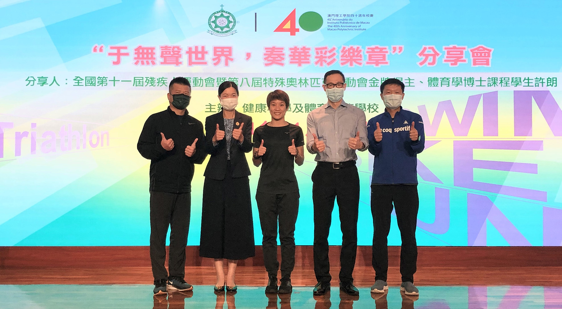 Para os estudantes universitários e jovens compreenderem a preparação dos atletas de triatlo e para lhes transmitir a energia positiva do desporto, a Escola Superior de Ciências de Saúde e Desporto do Instituto Politécnico de Macau (ESCSD-IPM) organizou, no dia 18 de Novembro, uma sessão de partilha intitulada “Capítulo maravilhoso num mundo silencioso”. Hoi Long, aluna do Curso de Doutoramento em Desporto do IPM, também a vencedora da medalha de ouro nos 11.os Jogos Desportivos para Pessoas com Deficiência da China e nos 8.os Jogos Olímpicos Especiais, foi a atleta convidada para partilhar a sua experiência em alta competição e treinamento, conjugados com os estudos, o emprego e o crescimento, tendo atraído a participação de muitos professores e alunos nesta sessão, que decorreu num ambiente muito caloroso.