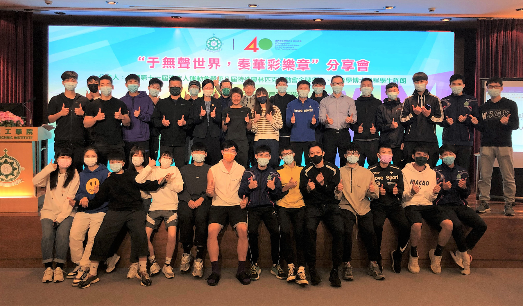 Hoi Long, atleta vencedora de medalha de ouro dos Jogos Desportivos para Pessoas com Deficiência da China, partilhou o seu sucesso e transmitiu energia positiva no Instituto Politécnico de Macau
