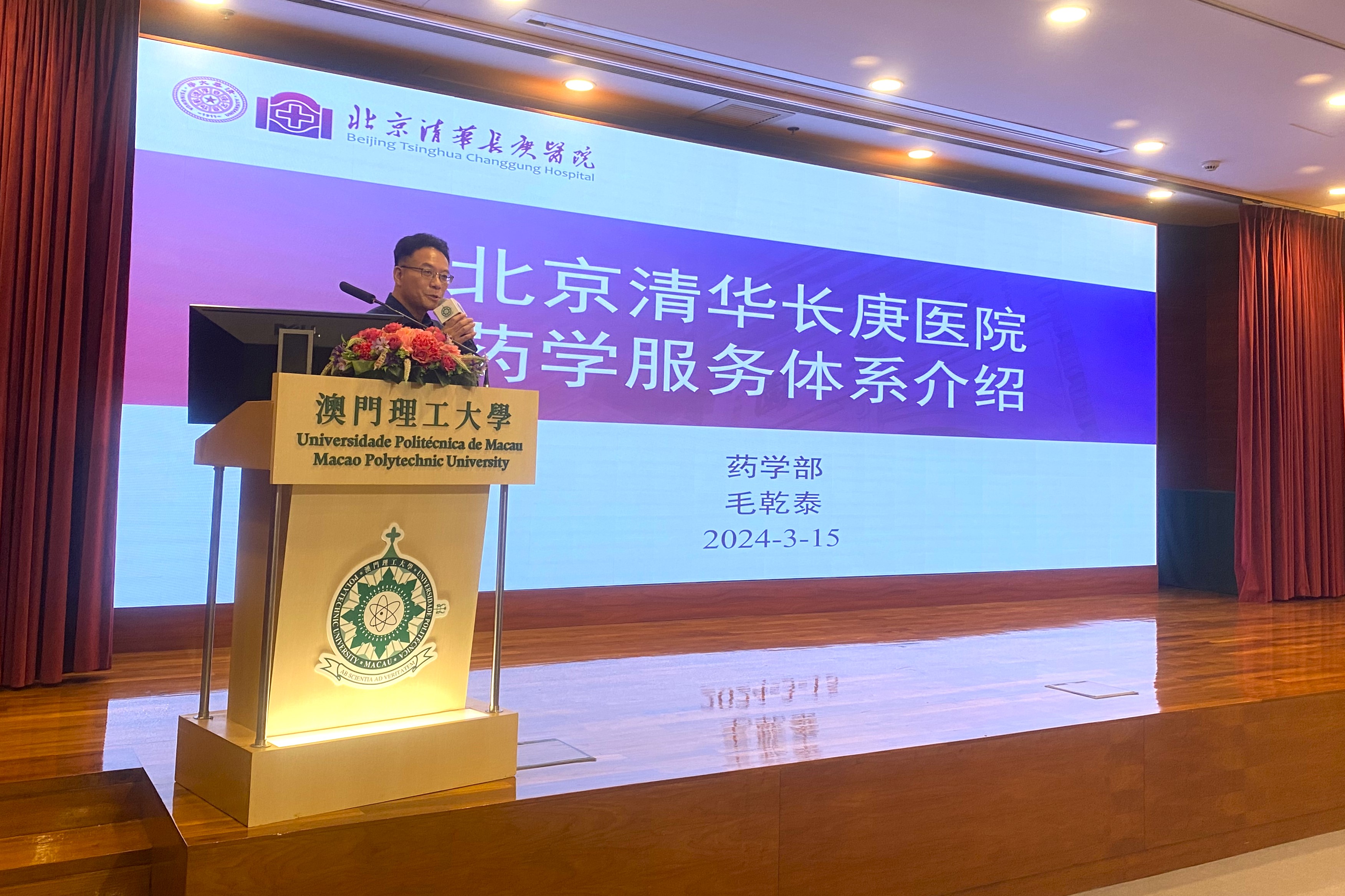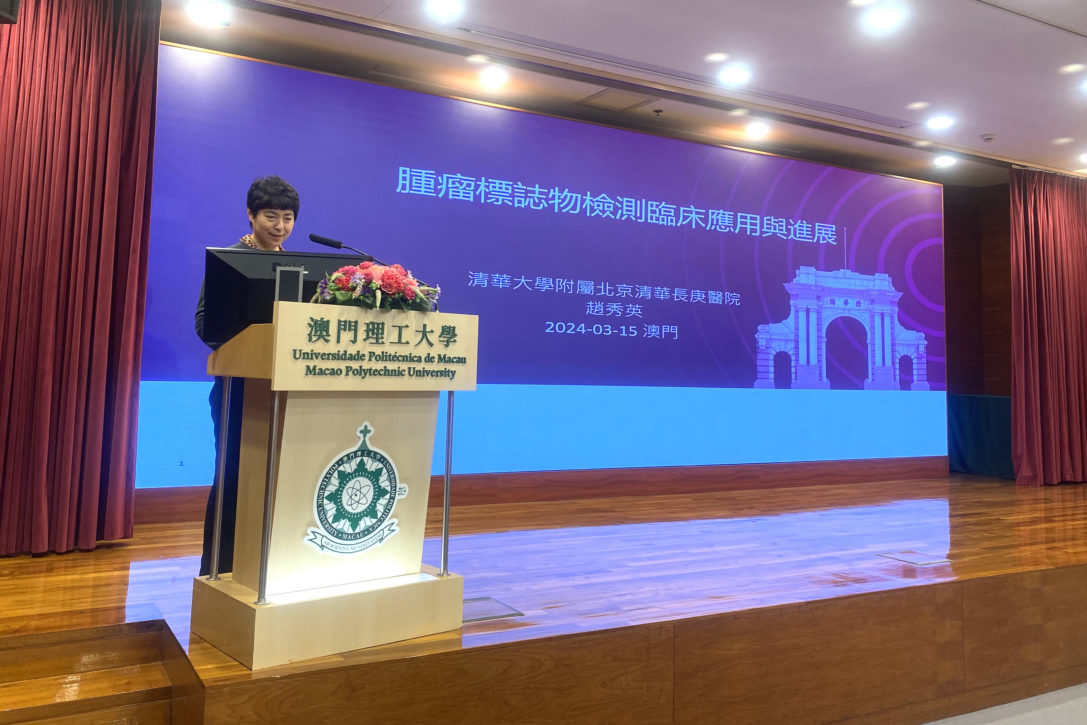 Com o objectivo de acompanhar o desenvolvimento profissional do Curso de Técnicas Bio-Médicas (Técnicas de Análises e Técnicas Farmacêuticas), permitir que os docentes e alunos conheçam melhor os novos progressos profissionais e os conhecimentos de vanguarda clínica, alargar os horizontes na área médica e aprofundar os conhecimentos dos alunos nos campos de laboratório clínico e de farmácia, o Curso de Técnicas Bio-Médicas da Universidade Politécnica de Macau (UPM) convidou a directora do Departamento de Laboratório Clínico do Beijing Tsinghua Changgung Hospital, Zhao Xiuying, e o chefe do Departamento de Farmácia do mesmo hospital, Mao Qiantai, para realizarem workshops sobre “Reflexão sobre a aplicação clínica dos marcadores tumorais” e “Introdução ao sistema de serviços farmacêuticos no Beijing Tsinghua Changgung Hospital”. O evento foi bem acolhido e contou com a participação de professores e estudantes das áreas de medicina e enfermagem da UPM.