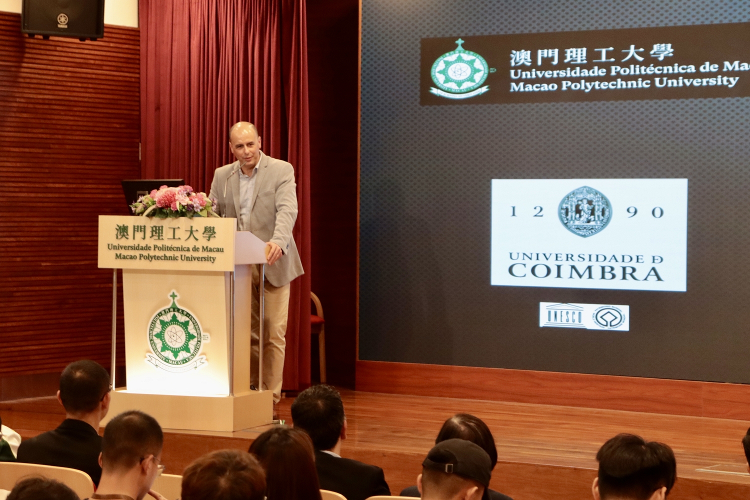 Com o objectivo de reforçar a cooperação e o intercâmbio com a Universidade de Coimbra (UC), alargar os horizontes dos docentes e alunos, bem como conhecer os últimos desenvolvimentos e conhecimentos do desporto e das ciências do desporto em Portugal, a Faculdade de Ciências de Saúde e Desporto da Universidade Politécnica de Macau (FCSD-UPM) organizou um seminário e convidou, para serem oradores, o antigo Vice-Reitor da UC, António Figueiredo, e o actual Sub-Director da Faculdade de Ciências do Desporto e Educação Física (FCDEF) da UC, Hugo Sarmento. O seminário atraiu a participação de mais de uma centena de estudantes de pós-graduação e de licenciatura na área do desporto, formando um ambiente muito caloroso.