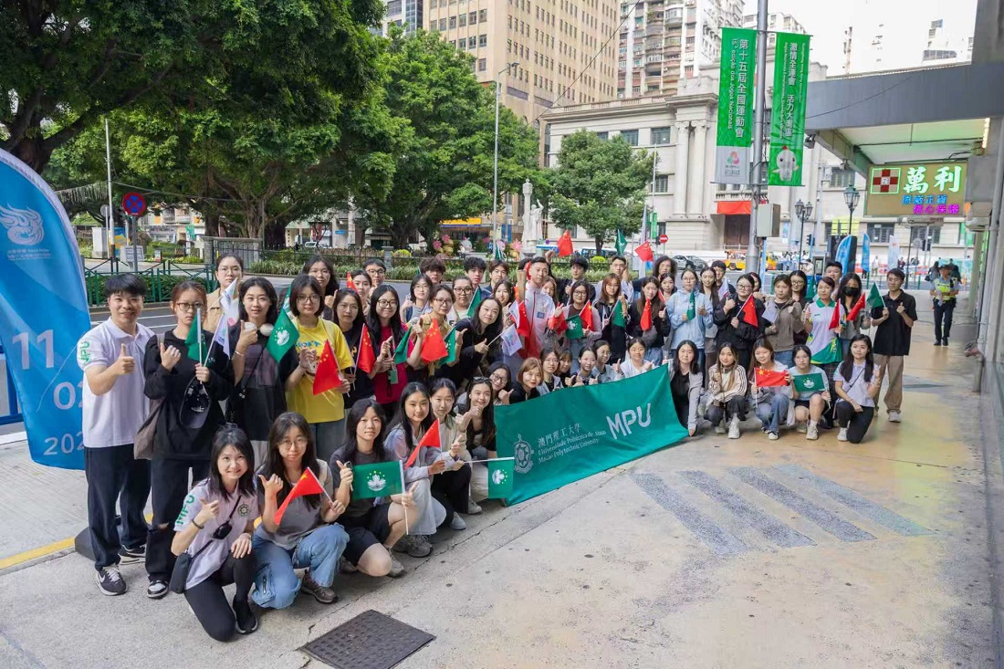 Iniciada em grande escala a 15.ª Edição dos Jogos Nacionais, os docentes e alunos da Universidade Politécnica de Macau (UPM) participaram activamente neste evento magnífico, especialmente no transporte da tocha, transmitindo o apoio aos estafetas com as maiores ovações e aplausos. Muitos alunos e graduados da UPM assumiram as funções de estafetas da tocha na Zona de Competição de Macau, transportando a tocha dos Jogos Nacionais até ao seu destino. O Reitor da UPM, Marcus Im, e os membros do Conselho do Desporto, Lou Kit Long e Chao Hio Tong, juntamente com um grande número de estudantes, estiveram presentes para demonstrar o seu apoio, incentivo e entusiasmo que iluminaram os Jogos Nacionais.