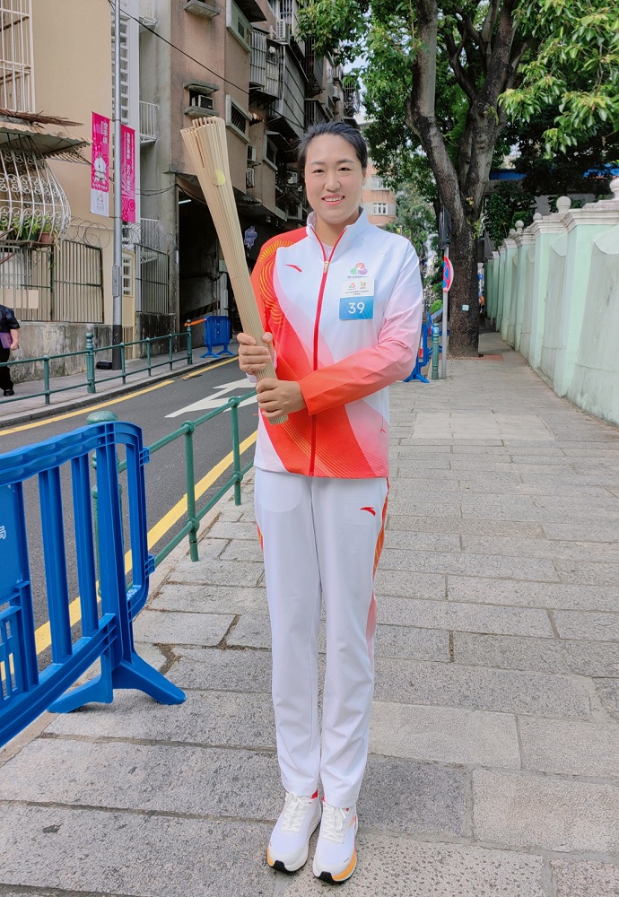 Zhang Yangyang, doutoranda da UPM, estafeta da tocha da 15.ª Edição dos Jogos Nacionais na Zona de Competição de Macau e vencedora da Medalha de Ouro nos Jogos Olímpicos de Pequim, referiu: “Quando era criança, costumava ver o transporte da tocha na televisão e nunca imaginei que um dia poderia assegurar a tocha nas minhas mãos. Ser estafeta da tocha na 15.ª Edição dos Jogos Nacionais foi uma experiência tal como a concretização do sonho. No momento em que a tocha foi acesa, senti a temperatura da chama e a profunda expectativa de todas as pessoas para o espírito de luta, que a tocha representa. No futuro, levarei este espírito da tocha de volta para o meu trabalho e para a minha vida, e transmitirei o amor e a força da tocha através de acções práticas, para não desiludir esta preciosa confiança.”