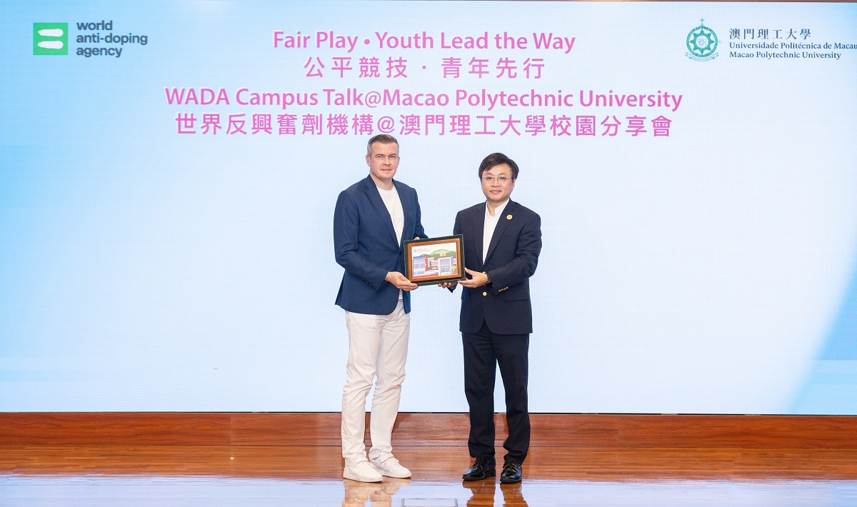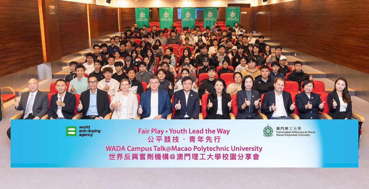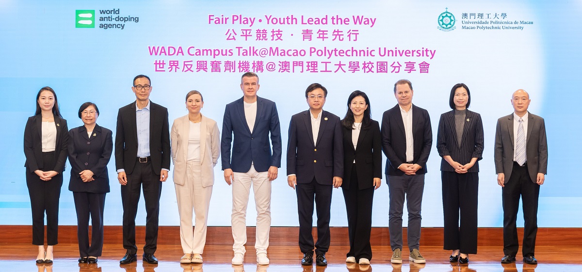 A delegação chefiada por Witold Bańka, Presidente da Agência Mundial Antidopagem (na sigla inglesa, WADA), e por Yang Yang, primeira medalhista de ouro nos Jogos Olímpicos de Inverno da China e Vice-Presidente da WADA, visitou a Universidade Politécnica de Macau (UPM) e realizou uma sessão de partilha no campus intitulada “Jogo Justo · Juventude Lidera o Caminho” da Agência Mundial Antidopagem. O evento contou com a presença de mais de cem participantes, incluindo o Reitor, Marcus Im, chefes, professores e alunos, da UPM.