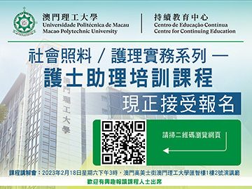 ![]() 澳理大舉辦“護士助理培訓課程”講解會澳門理工大學持續教育中心開辦“護士助理培訓課程”,為有志投身醫療護理機構健康照顧工作的人士提供系統性的培訓。為了讓報讀人士深入瞭解課程目標、教學安排、報名手續等,日前於澳門理工大學舉行“護士助理培訓課程”講解會,吸引了眾多業界及對課程感興趣的人士參加。 |