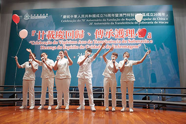 澳門理工學院高等衛生學校為慶祝中華人民共和國成立七十周年及澳門回歸二十周年,並值五月國際護士節,該校護理課程師生於五月二十四日在學院禮堂隆重舉辦“廿載慶回歸、傳承護理心”活動。