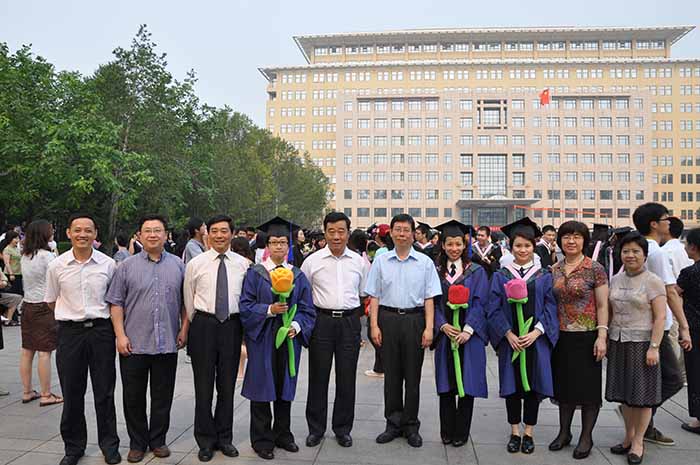 Class 2008 after the Commencement Ceremony with Prof. Cui Xiliang, President of BLCU (fifth from right) and Mr. Huo Mingjie, Deputy Party Committee Secretary (fifth from left) of the University