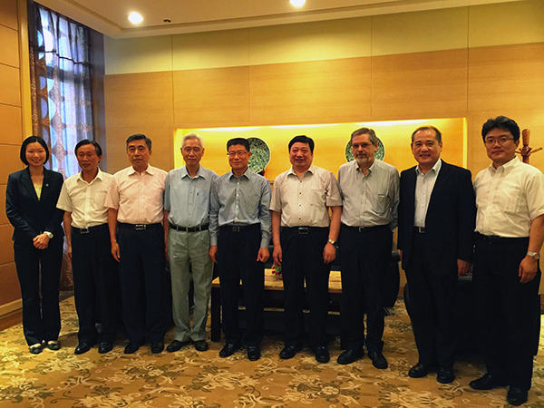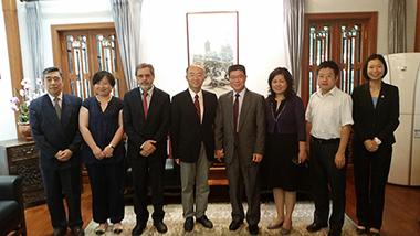 北京語言大學崔希亮校長 (左四) 及外國語學部與理工學院商討葡語教學及科研的合作