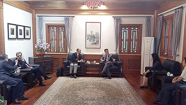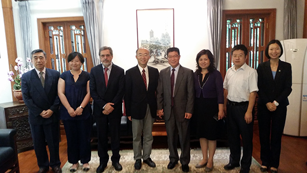 在北京期間,理工代表團禮節性拜訪國務院港澳事務辦公室,受到周波副主任、交流司向斌司長的歡迎。會晤中,李向玉院長介紹理工學院的教學、科研及社會服務的發展,並報告理工學院與葡語系國家在葡語教學的合作與交流情況。周波副主任歡迎代表團一行的到訪,肯定理工學院“小而精、小而美、出精品”的辦學定位及方向,培養大量實用型人才,對理工學院在各方面的發展及取得的成就表示祝賀;周副主任讚揚理工學院在與葡語國家地區的學術合作爲國家 “一帶一路”大戰略及澳門特區建設 “一個中心、一個平台”的發展所作出的努力及貢獻。他還說,澳門發展迅速,取決於人材,期盼理工學院在特區政府的大力支持下,教學與澳門發展配合,培養更多澳門需要的人才、與在内地大學合作的良好基礎上,繼續加强相關合作,並把國際交流工作做好。